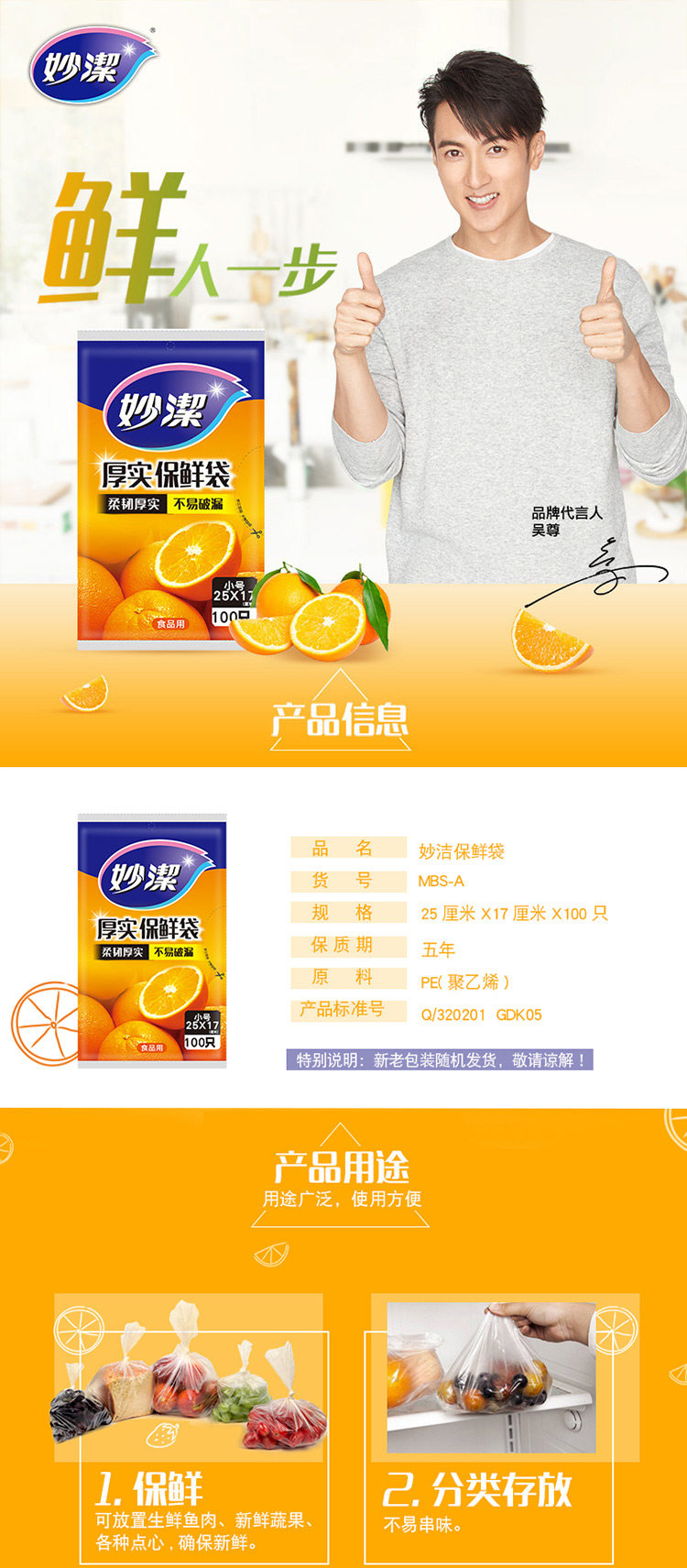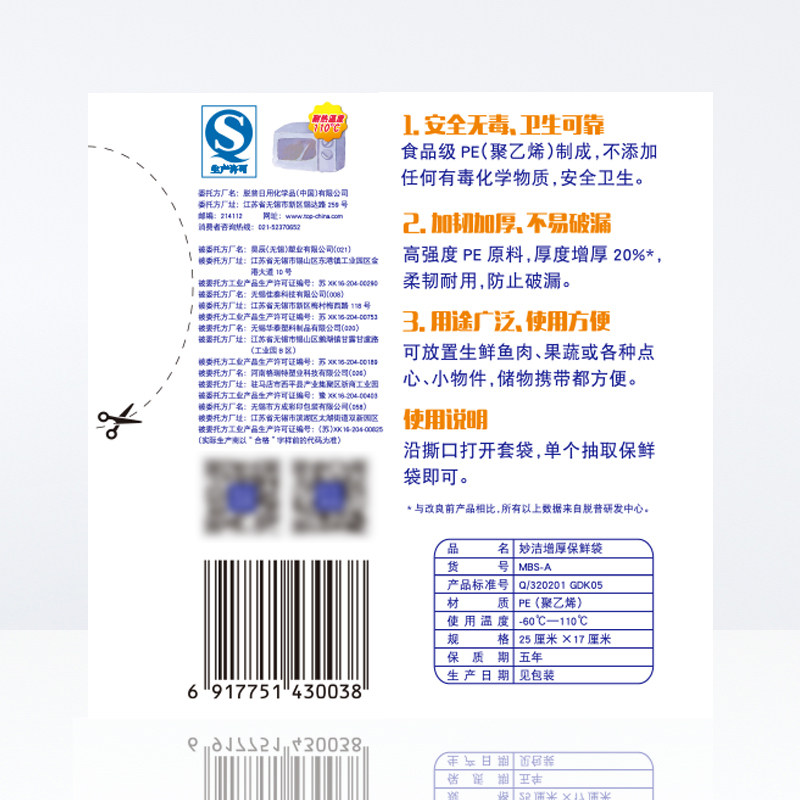 妙洁 One -Время для бытовой еды -разглашайте свежую плотную плотную упаковку для упаковки сумки.