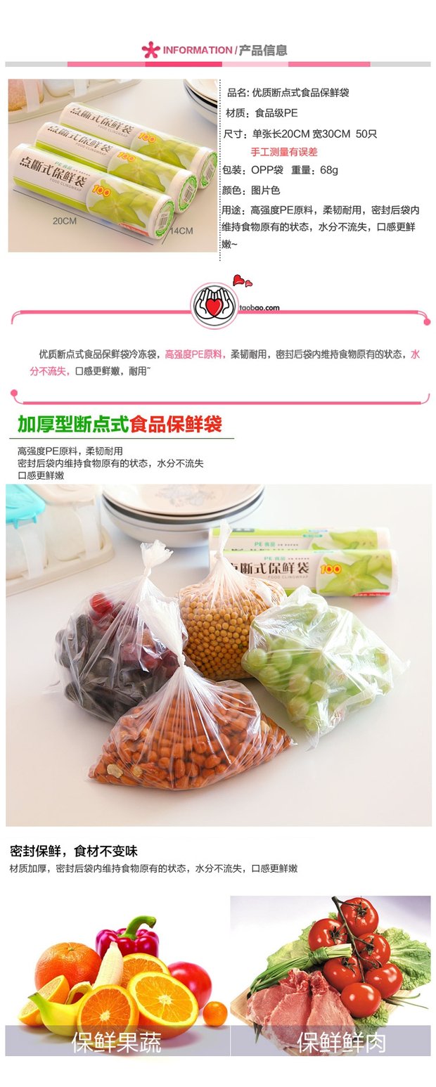 Food Fresh -Hearning Bag Большие рулоны домашней кухни для холодильника Микроволновая печь