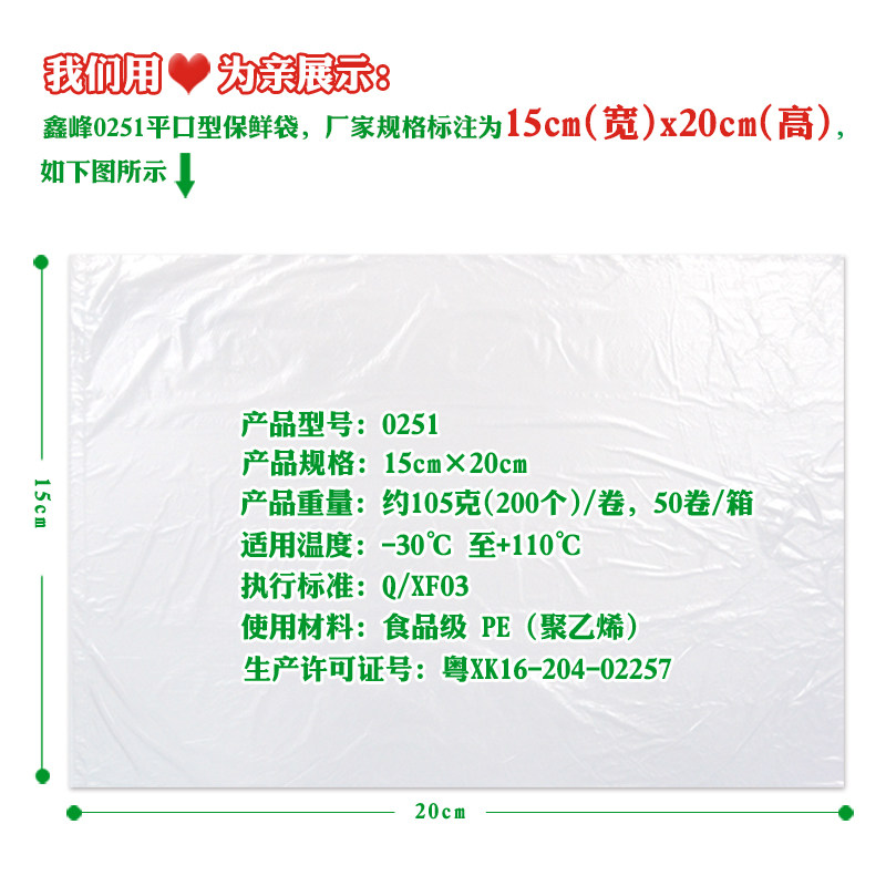 鑫峰 Перерыв в точке -Маленький номер плоский -маму -свежую сумку пищевой пакет с сохранением PE 15*20 см 0251 200 пакетов