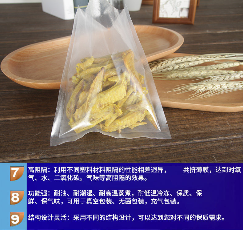 [Материал]: новая чистая нейлоновая композитная материал из PE Material Food -Food -Charebaging Sack может быть на пару и варить при высокой температуре. Его можно помещать в микроволновую печь, чтобы нагреть его. Он подходит для пищевой вакуумной упаковки. Это также может быть. Используется в другой упаковке продукта.
