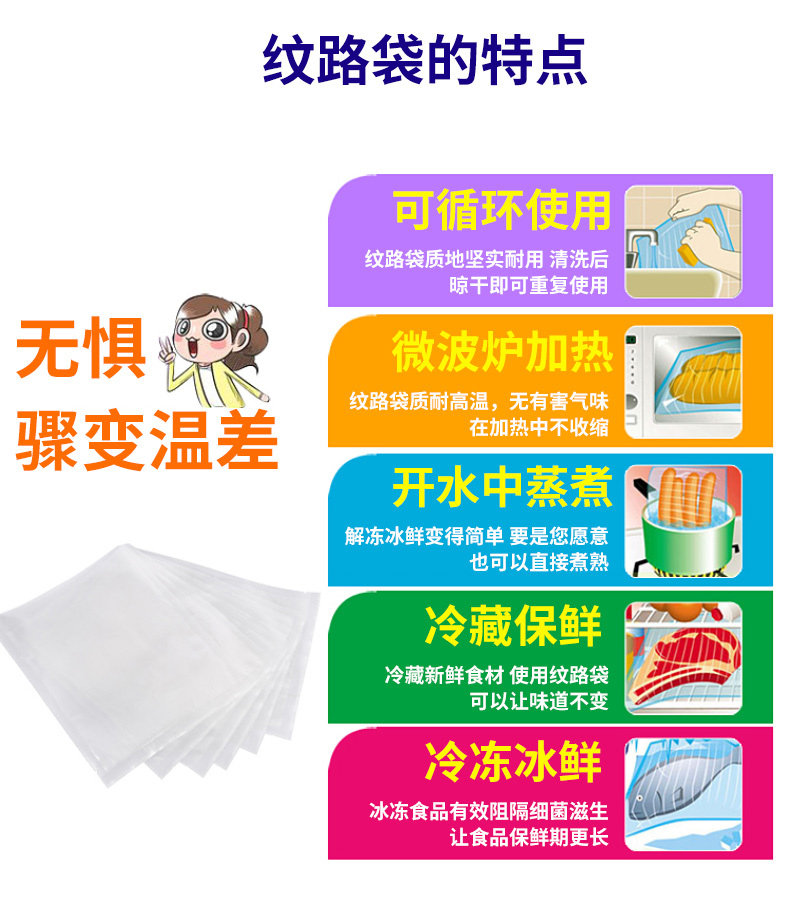 Сумки с катаниями: один рулет из пятиметра -кармана, длина свободно разрезана в соответствии с фактическим необходимым. Верхние и нижние рты герметизированы, что подходит для упаковки различных размеров пищи.