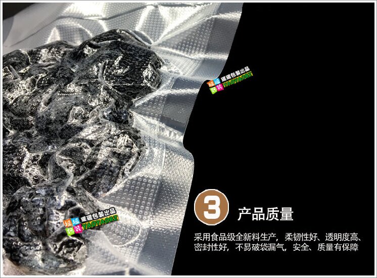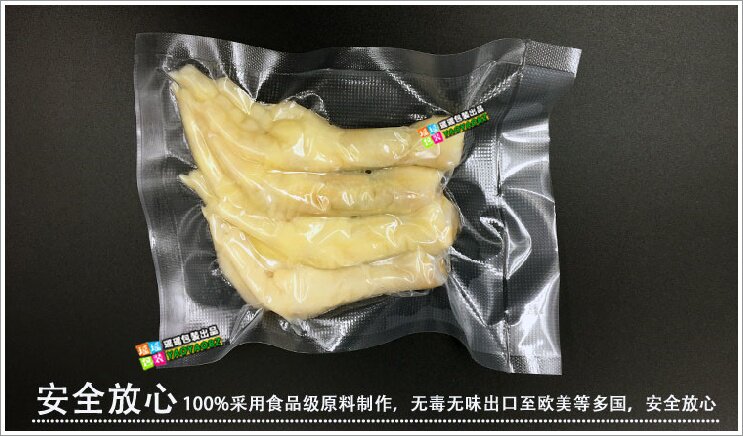 [Материал]: Новый материал Pure Nailon Composite PE с высоким уровнем пищи с пищевым классом может быть вареный и вареный при высокой температуре. Его можно поместить в микроволновую печь для него. Он подходит для всех продуктов для упаковки вакуумной упаковки. Его также можно использовать в других упаковке продукта.