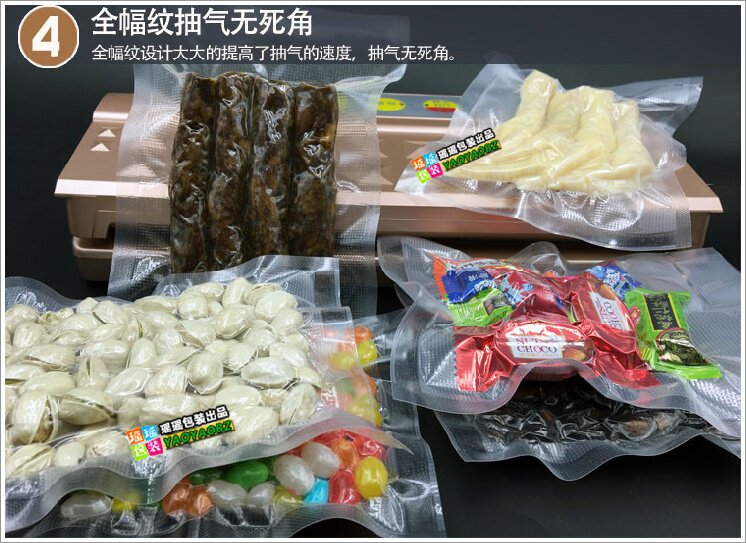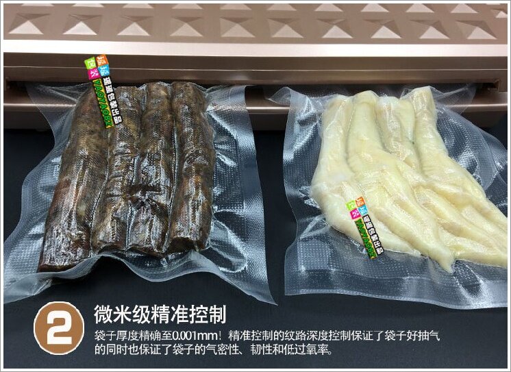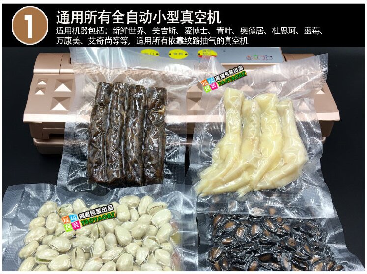 Сумка для рисунков односторонняя, а другая -гладкая профессиональная вакуумная сумка, которая подходит для полностью автоматической вакуумной упаковочной машины со всеми принципами вакуумной полости дома и за границей.[Тип -тип машины типа не подходит]