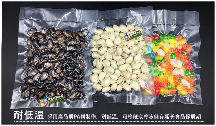 Сумка для рулона:Один объем длиной 5-15 метров, длина свободно разрезана в зависимости от фактического необходимого, и два конца должны быть запечатаны, который предназначен для герметизации верхнего и нижнего рта, что подходит для упаковки различных размеров пищи.