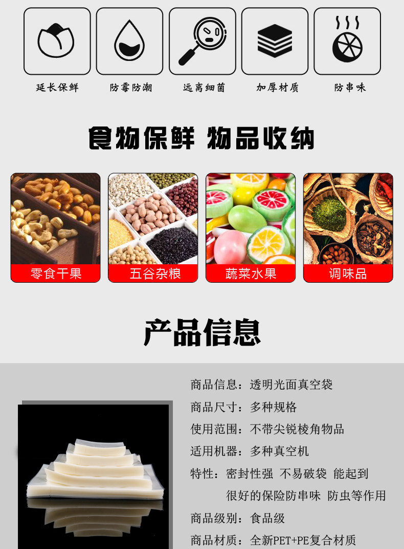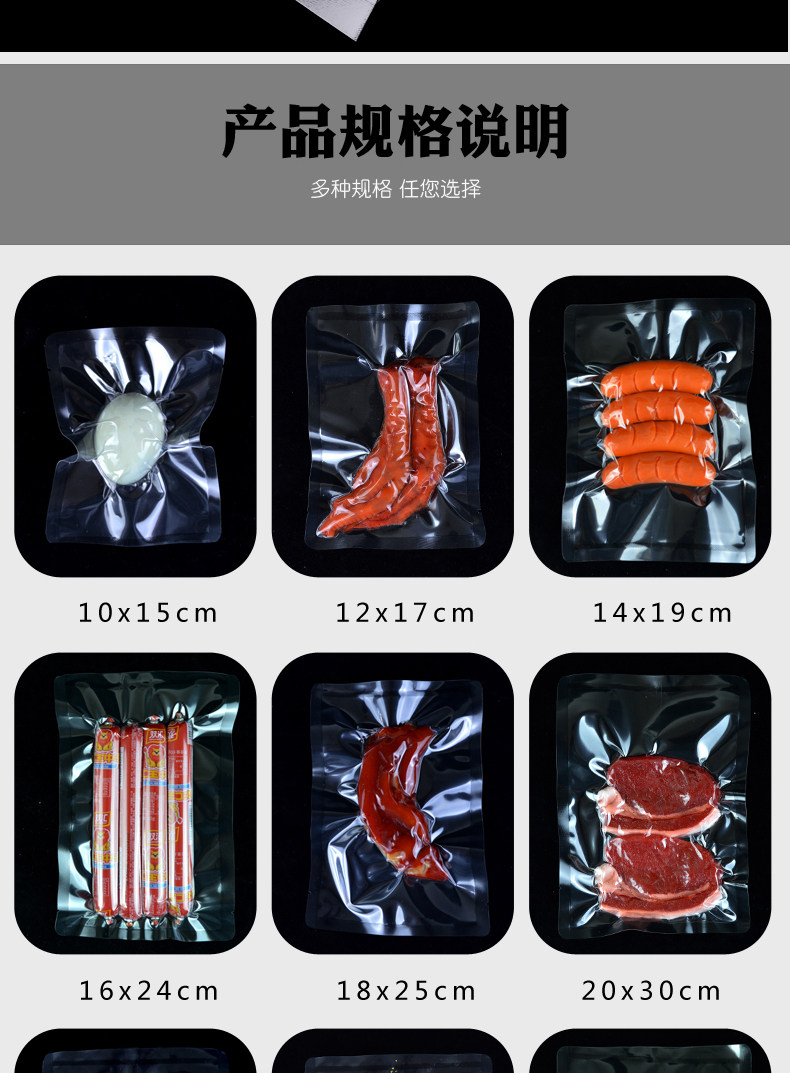 | Прозрачный таблица спецификации вакуумной сумки Большое количество может быть сделано для печати. Нажмите на спецификации, чтобы напрямую ввести покупку | ||||||||||
