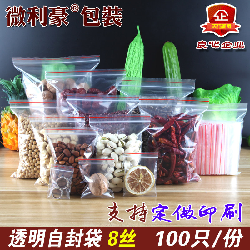 Двойная 8 шелковая большая прозрачная свежая сумка с сумкой для пакета с пищевой продовольственной упаковкой (обычно используемая модель) 100/порция