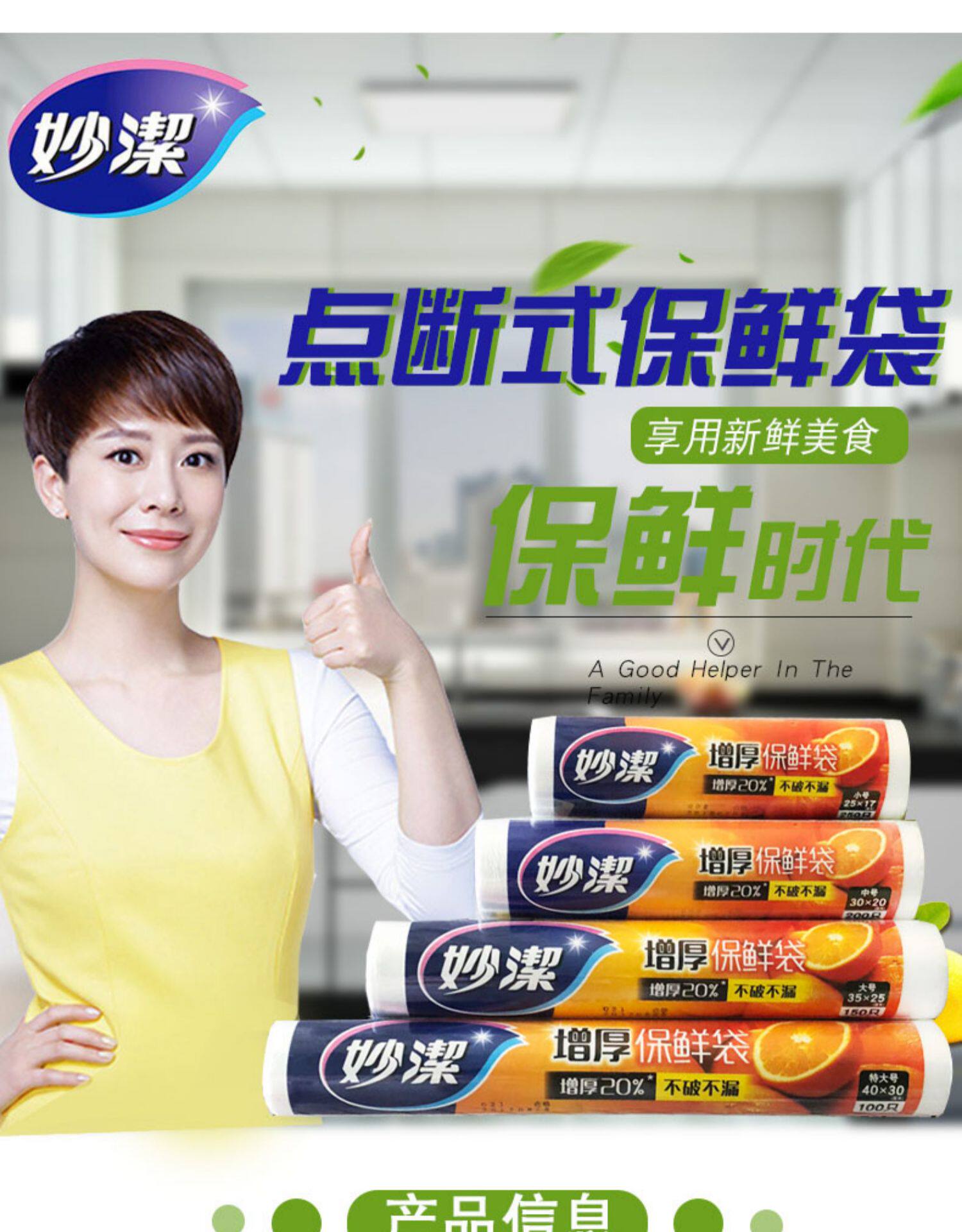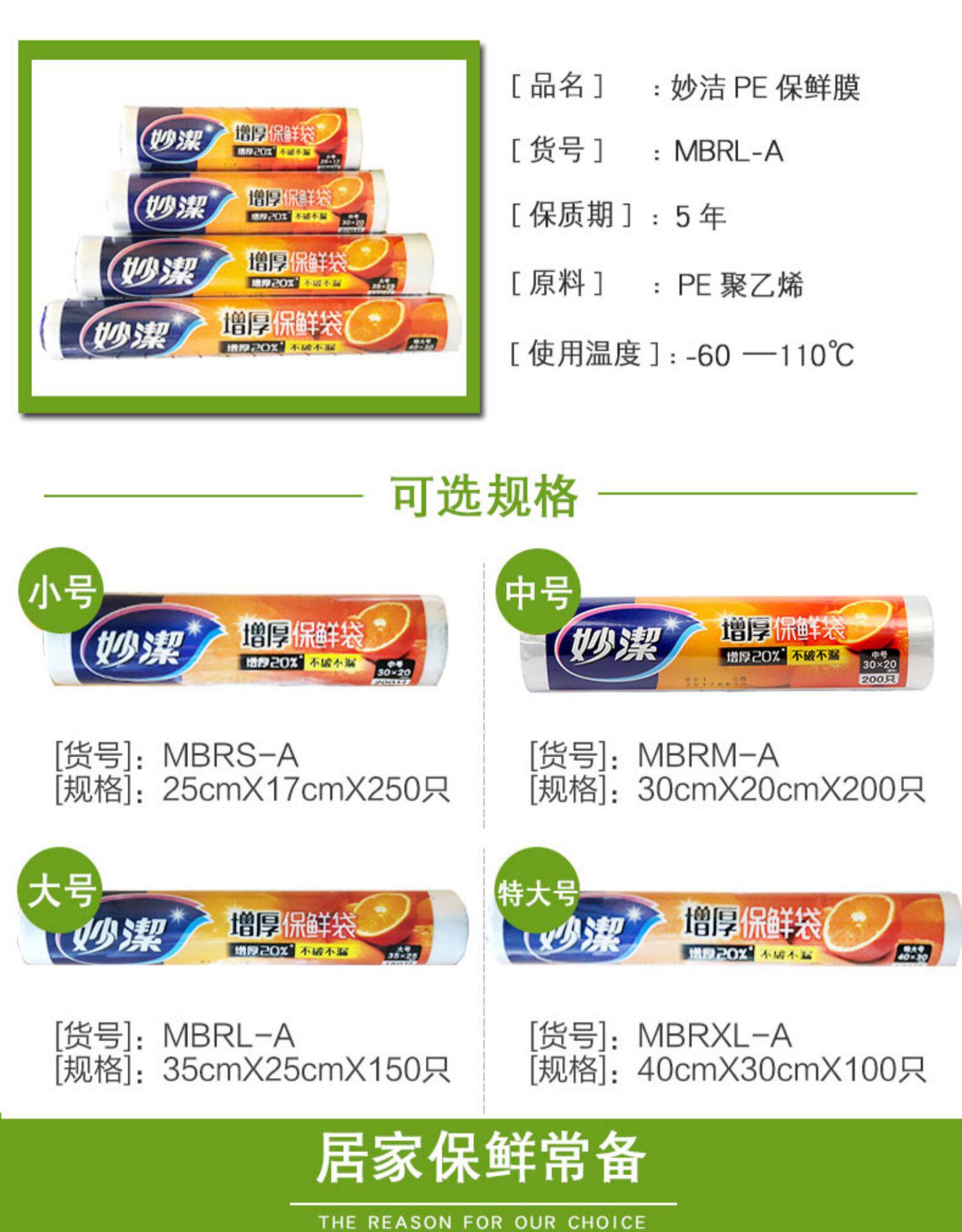 Miaojie Fresh Bag Семейная экономическая инсталляция продовольственная сумка Специальная толстая жилетка для кухни свежее сумки Большой рулон