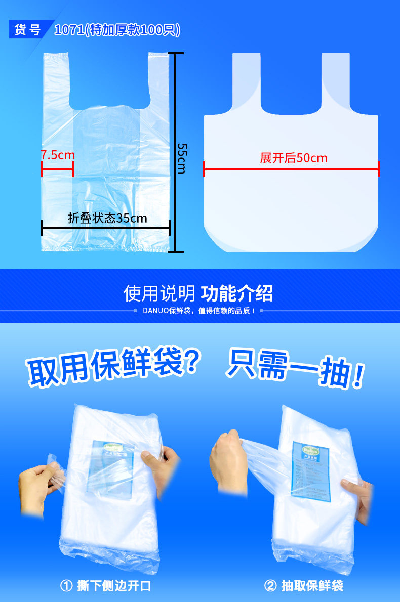 Пикап пищи свежие -хранение рука -изготовленные большие домохозяйственные пластиковые пакеты.