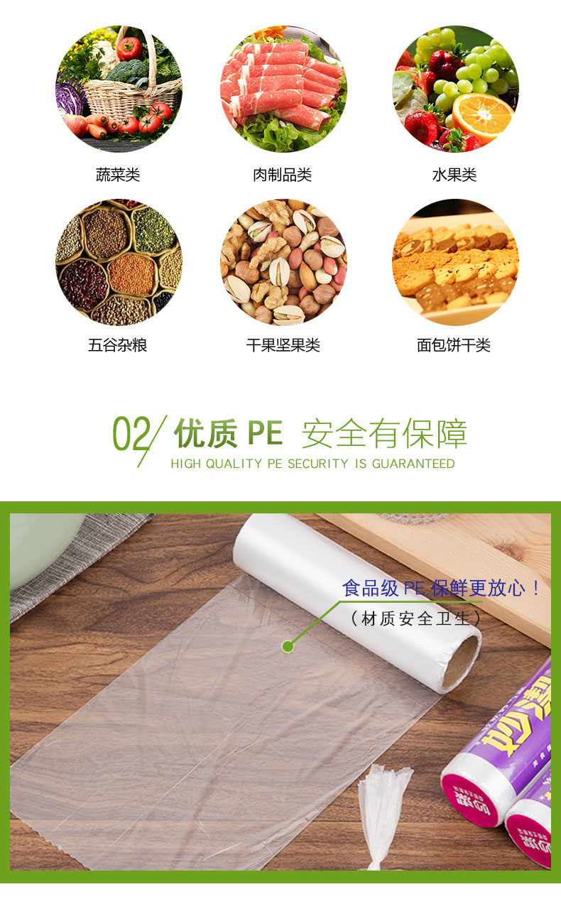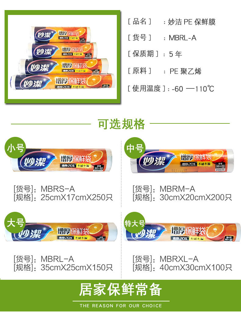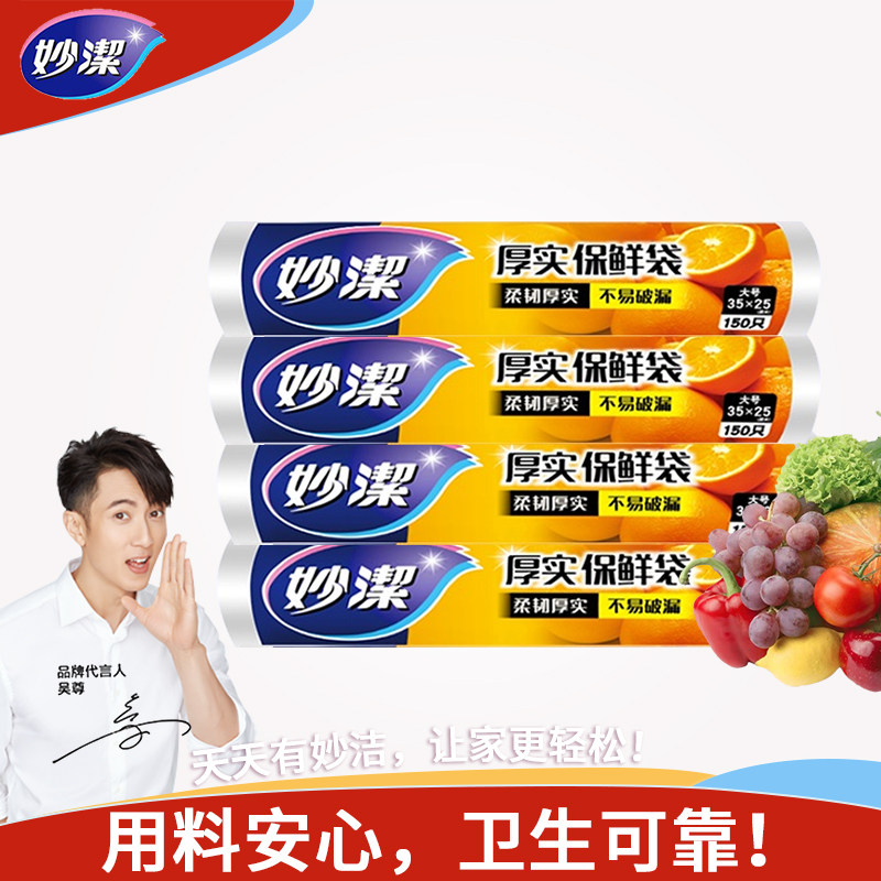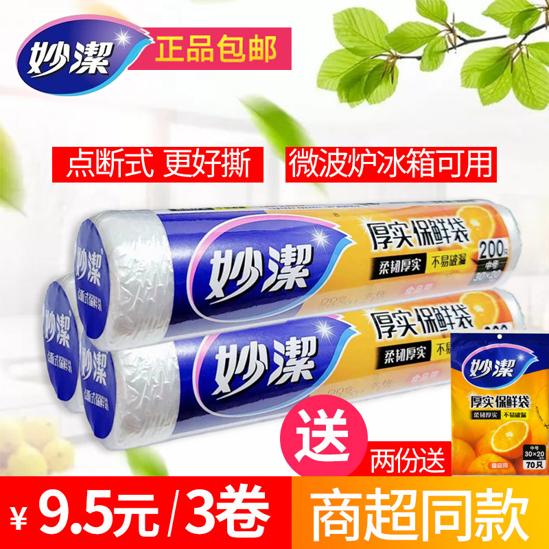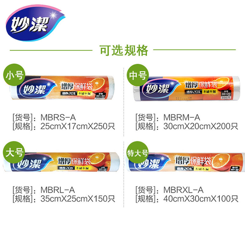 妙洁 Свежий пакет Домохозяйство Толстый пластиковый пакет пищевой сортировки PE большой, средний распределенный точечный