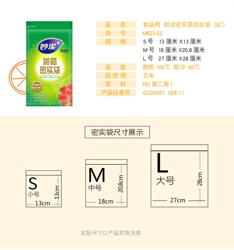 妙洁 Папа -даспин продовольственная герметичная сумка Семейство Свежая сумка с толстой самостоятельной сбором