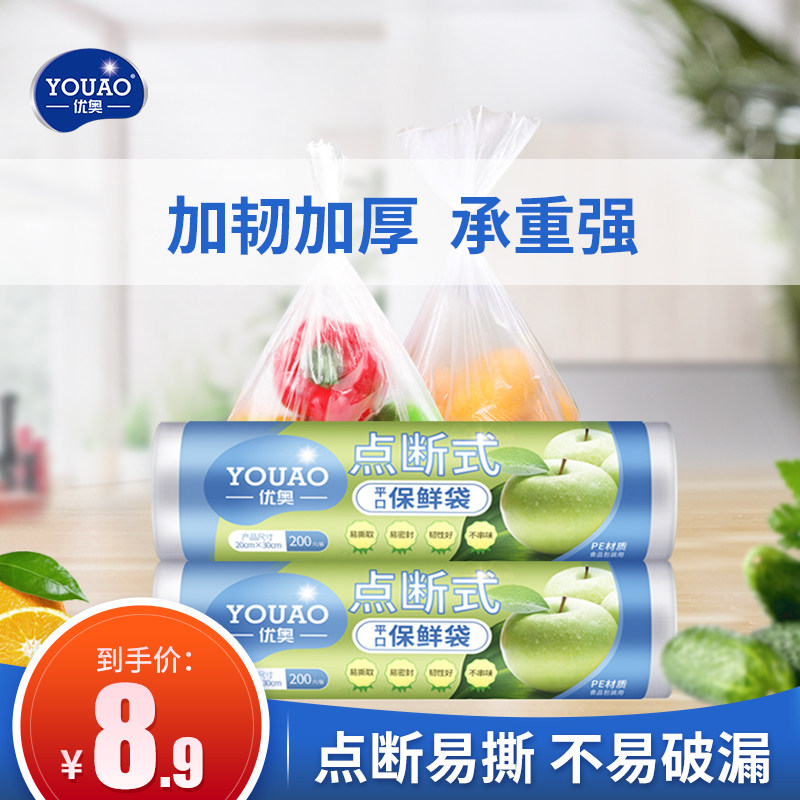 Youao одноразовая платформа свежие прохождение и катящиеся пакеты толстые домашние продукты Большой, маленький свежий пластиковый пакет