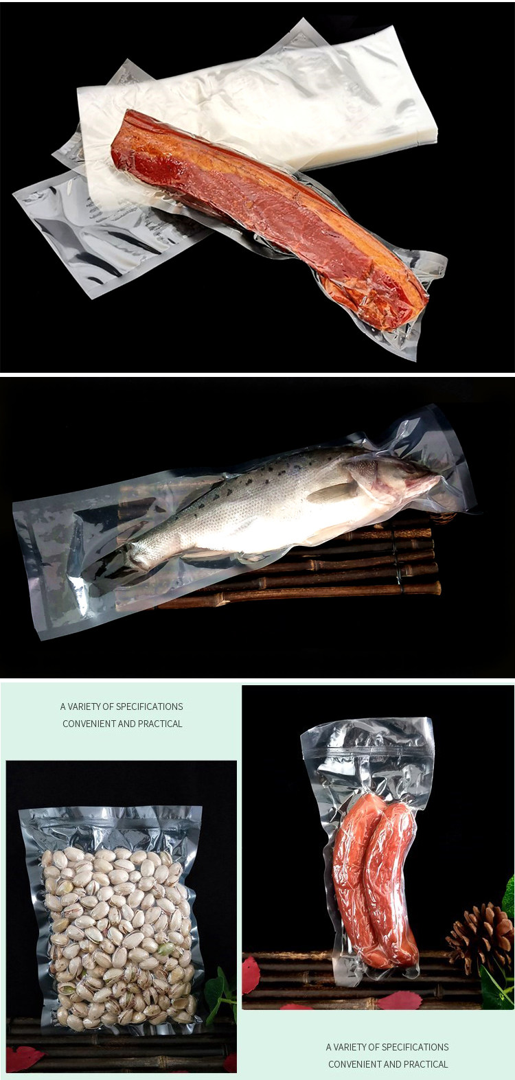 Утолщенная и расширенная нейлоновая вакуумная сумка светлая лапша длинная полосатая упаковка 32 шелковая аромат рыба морепродукты морепродукты замороженная утиная шея