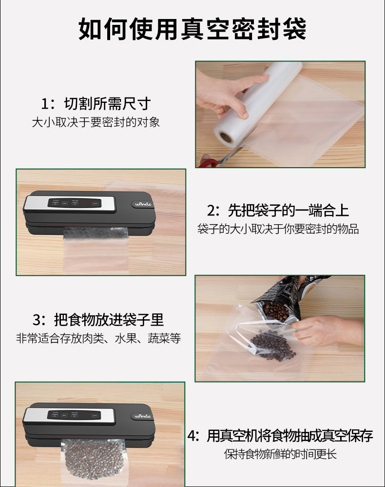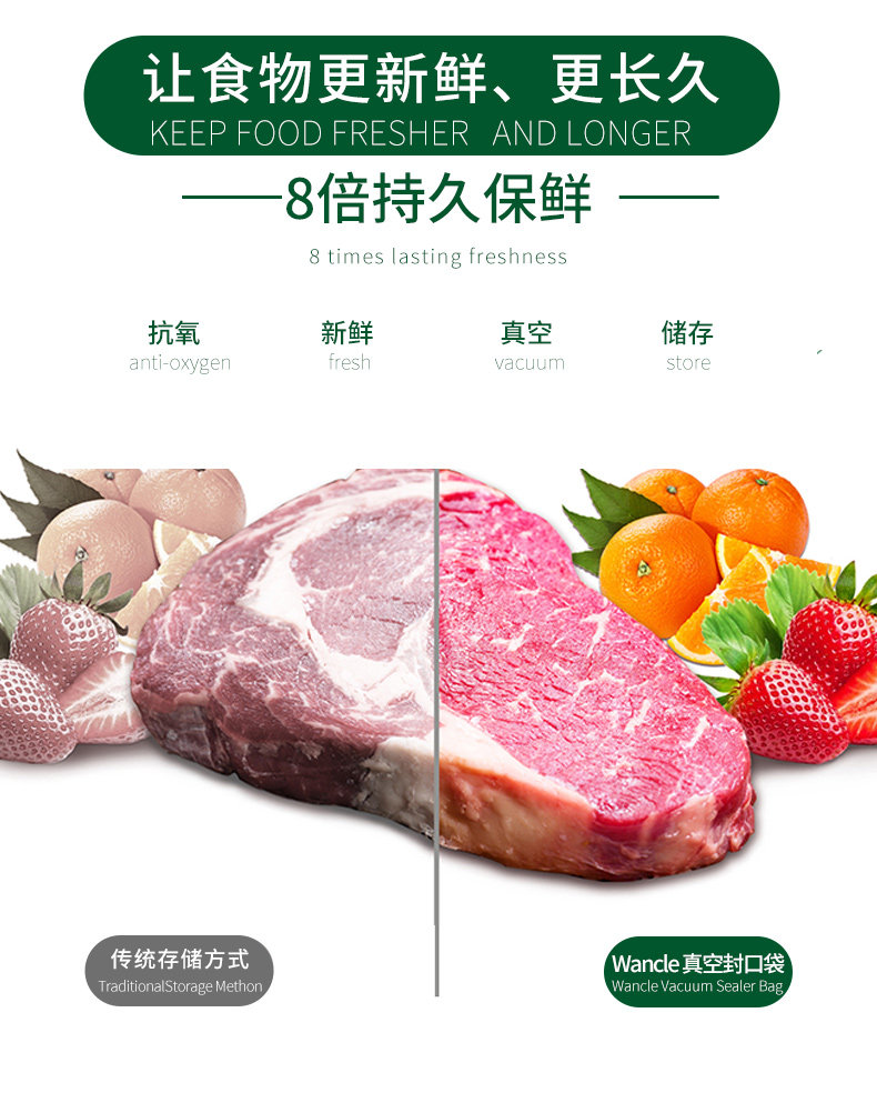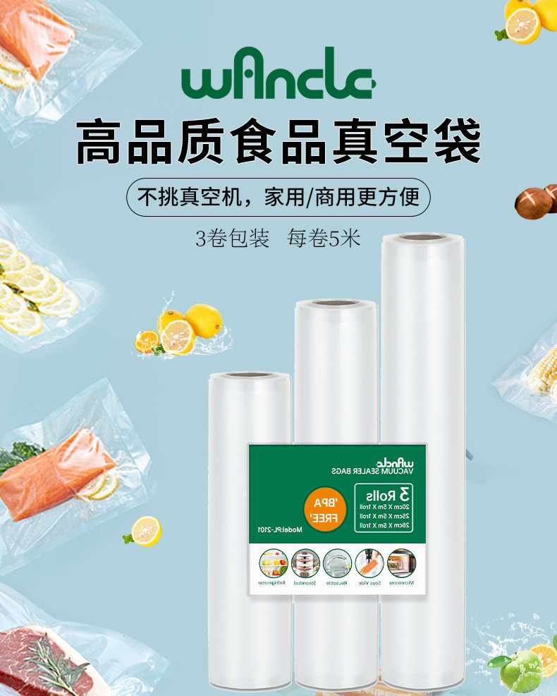 Wancle Net Line Lotal вакуумная сумка пищевая упаковка сжатая уплотнение вытягивание настоящего пластикового уплотнения свежие сумки Семейство