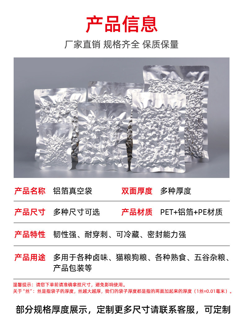 Чистая алюминиевая фольга вакуумная сумка пищевая сумка сгущенная и поглощающая легкая оловянная мешка с фольгой Приготовленная пакет для сохранения пищи.