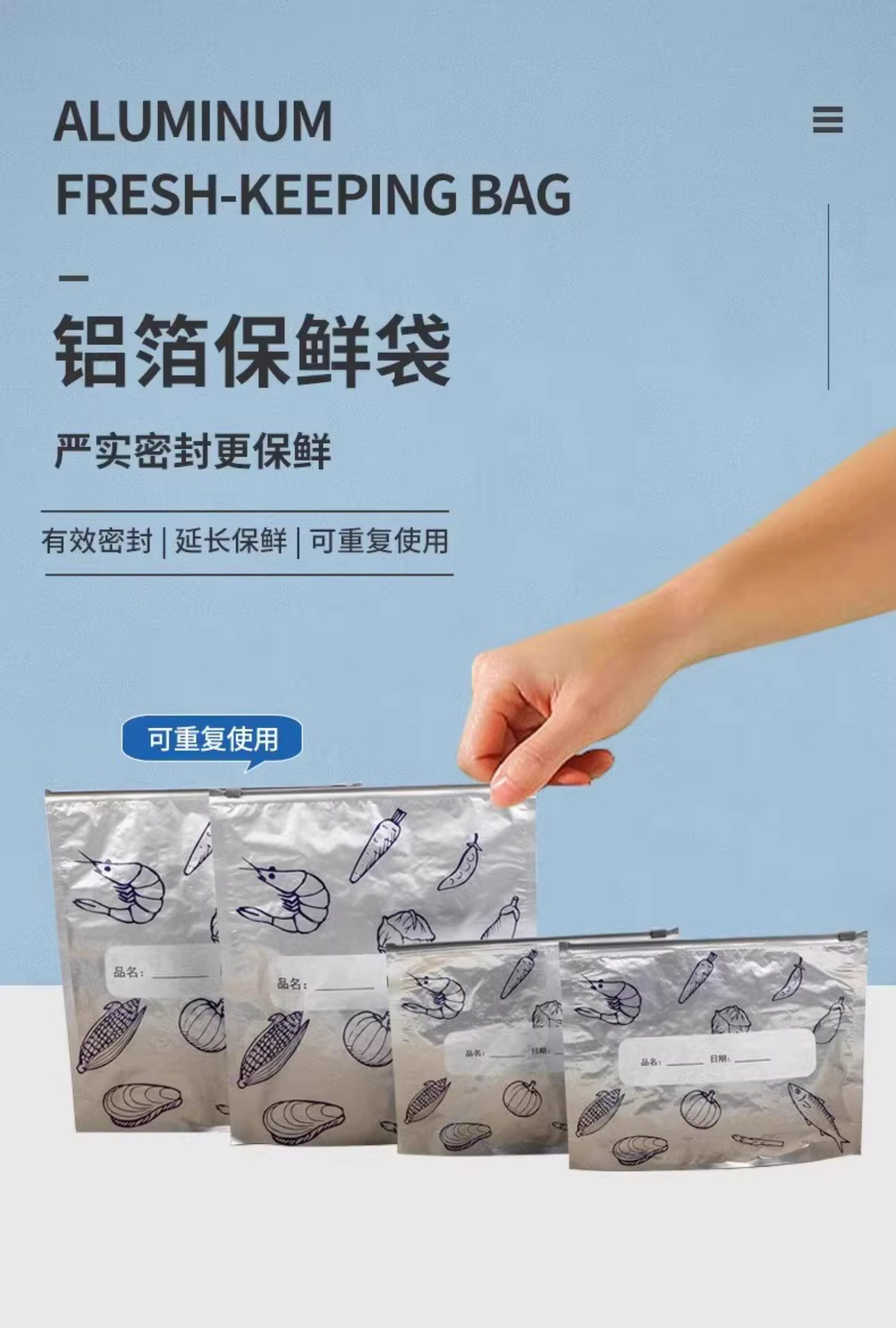 Алюминиевая титановая фольга, свежая сумка, пищевая молния, Свежая сумка, домашний холодильник, замороженная сумка для хранения замороженных продуктов.