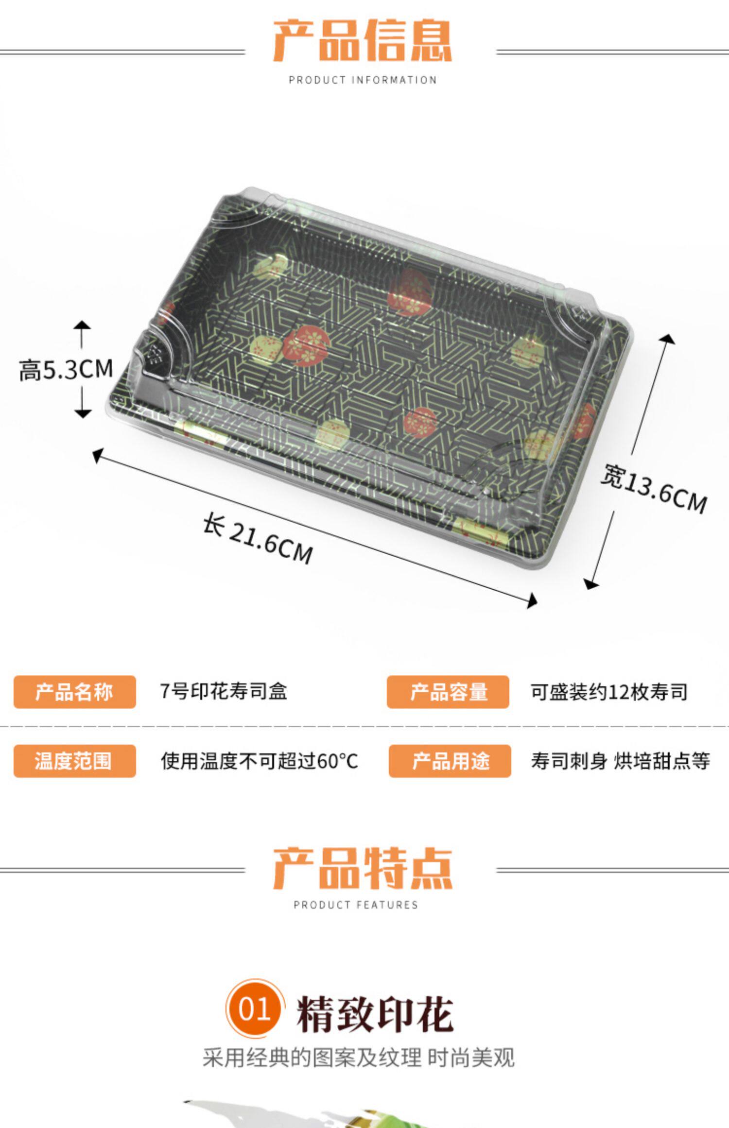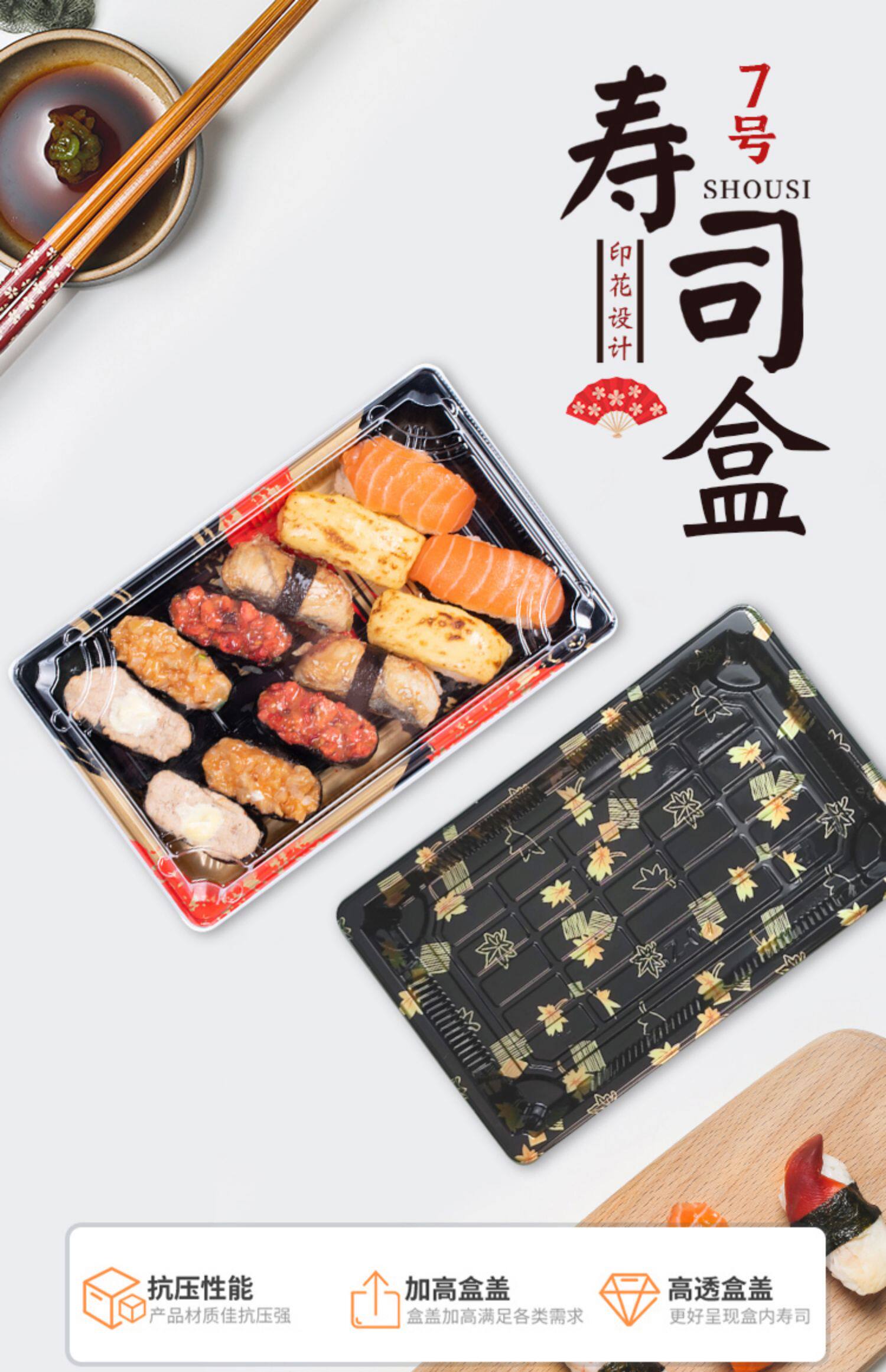 № 7 одноразовая коробка для суши в японском стиле, специальная упаковочная коробка, коммерческая коробка для суши, очень большая, средняя и маленькая прямоугольная пластиковая коробка с принтом