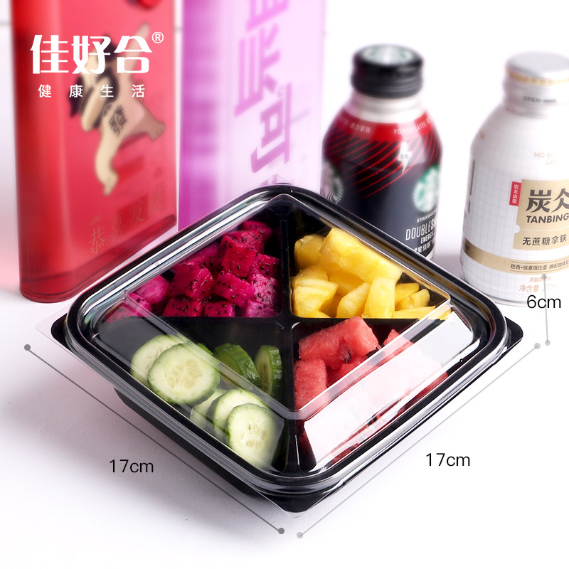 Jiaxiahe Fruit Flucing Box Одноразовая фрукты свежая режущая коробка пластиковая прозрачная салатная блюда квадрат