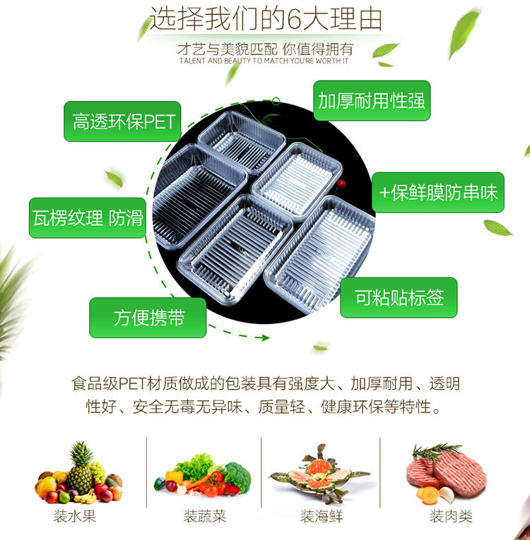 Один -время поддона Пластиковая прямоугольная овощная упаковка прозрачная толстая супермаркет свежий поддон 100 фруктовых коробок