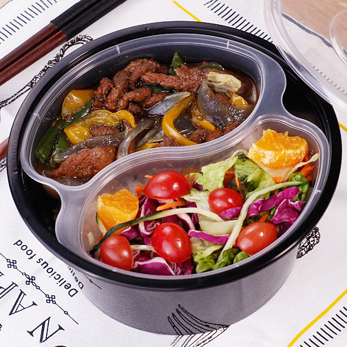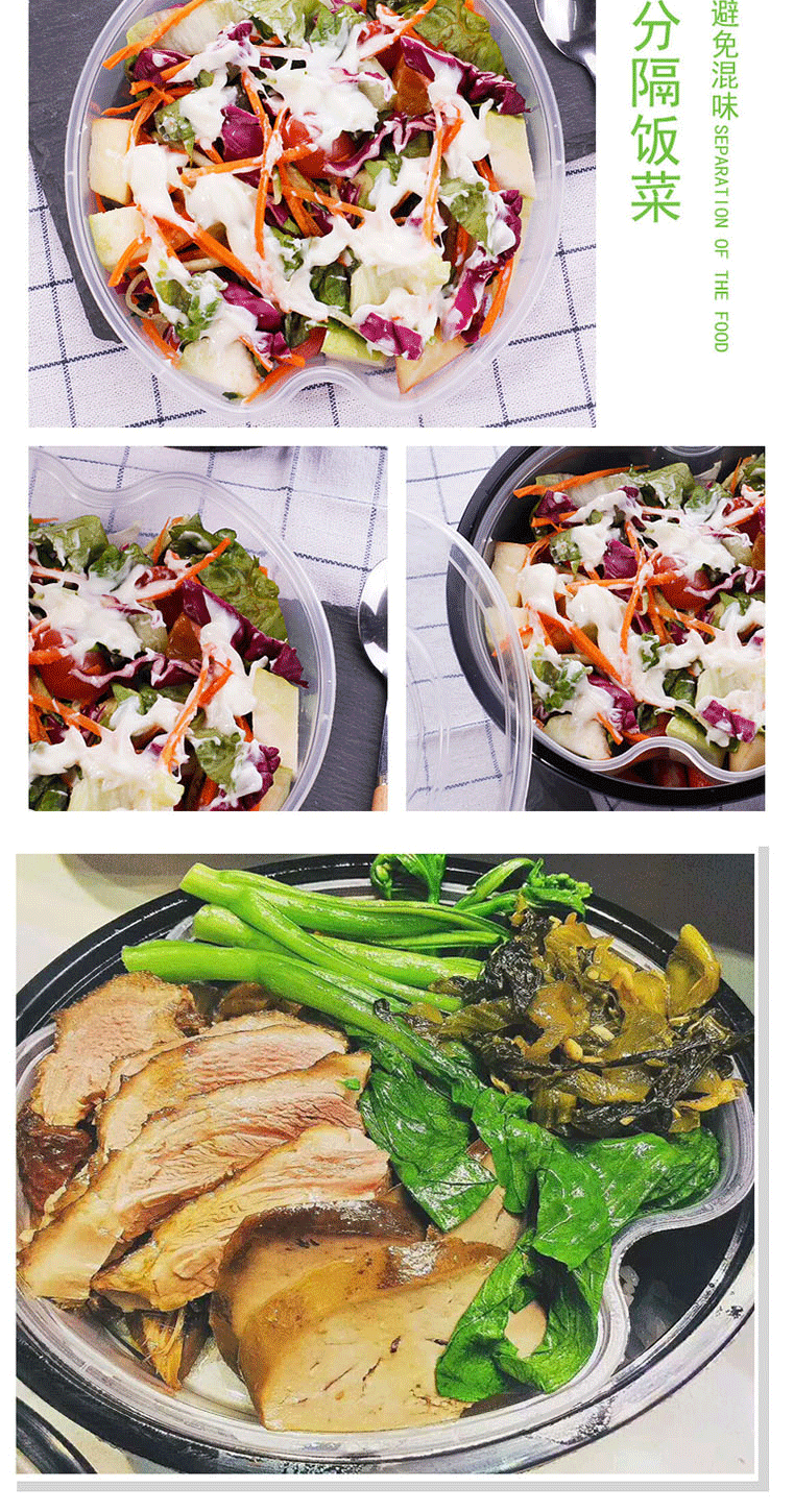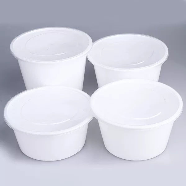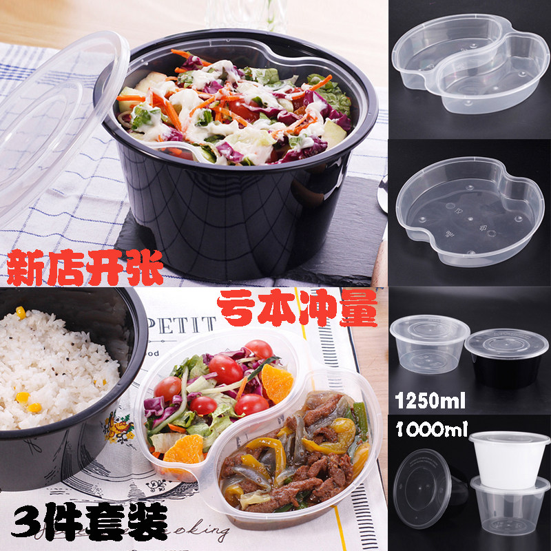 100012501500 Толстая одноразовая одноразовая пакетная коробка пластиковая коробка для ланч -ланч Два слоя круглая белая чаша с лапшой на вынос