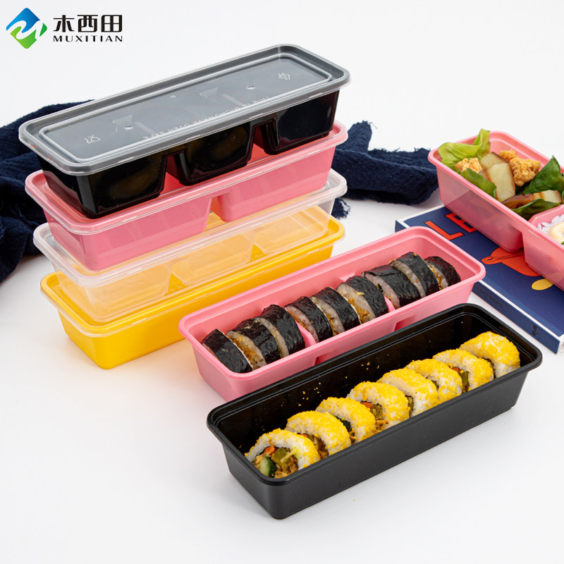 Японский стиль прямоугольный одноразовый ланч -коробка сетка красная с крышкой двойной сетка Три сетка Sushi Pack Box Японская десертная десертная коробка на вынос
