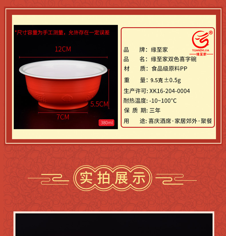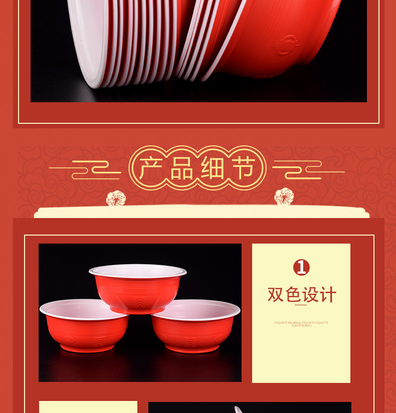 缘至家 Красная пластиковая праздничнная экологичная посуда для домашнего использования, увеличенная толщина