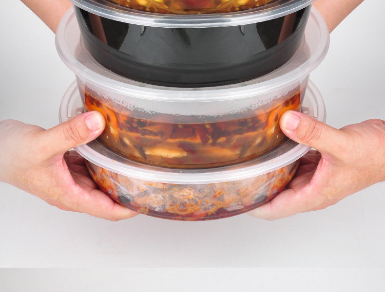 Упаковочная коробка одноразовая миска с круглой оптовой горячей горшкой из квашеной кастрюли, ланч -коробки с рыбной вынос с большими возможностями