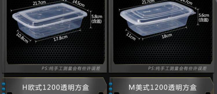 Прямоугольный пакет, черный ланч-бокс, в американском стиле, 750 мл, 2000 мл