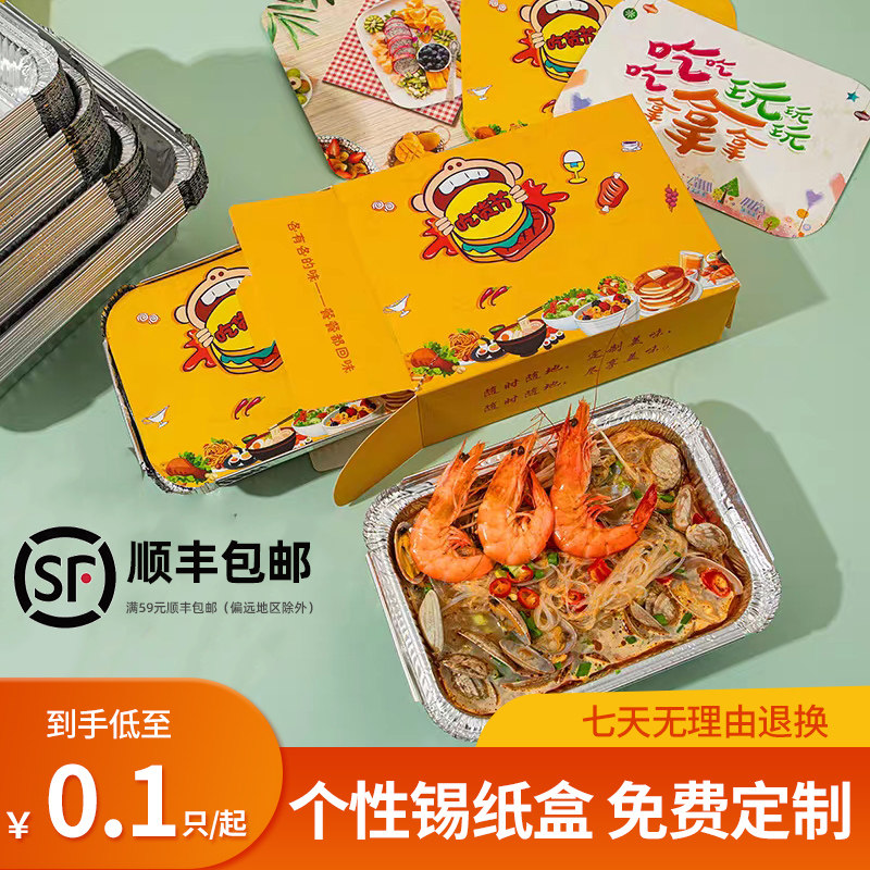 Категория олова коробка прямоугольная барбекю Disperton Boxing Box Flye Box Takeaway Коммерческая толстая фольга корона с крышками