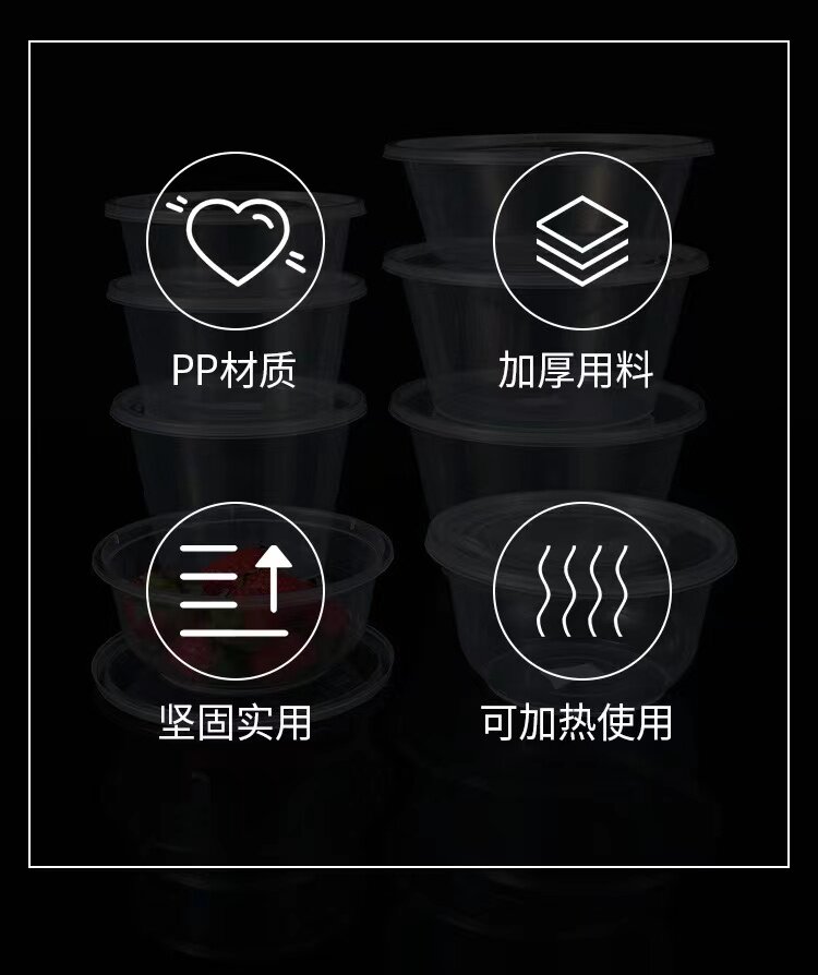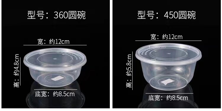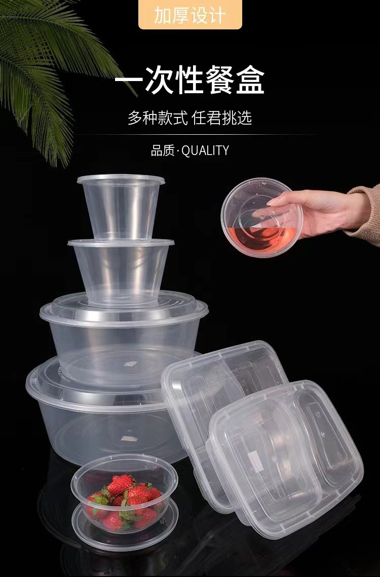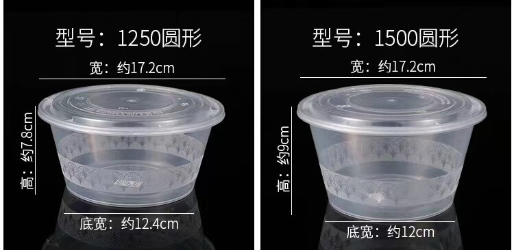 Круглая одноразовая коробка для ланч -коробки -Объявление пластиковой на вынос упаковочной коробки толстая прозрачная фаст -фуд Bento Box Soup Mowl с крышкой