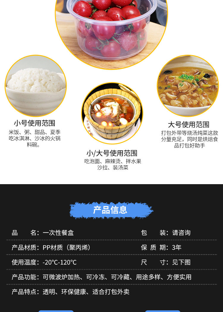 Одноразовая коробка для ланч -коробки Ice Powder Специальная миска с круглой десертной пакетной коробкой коробки на вынос Fruit Box