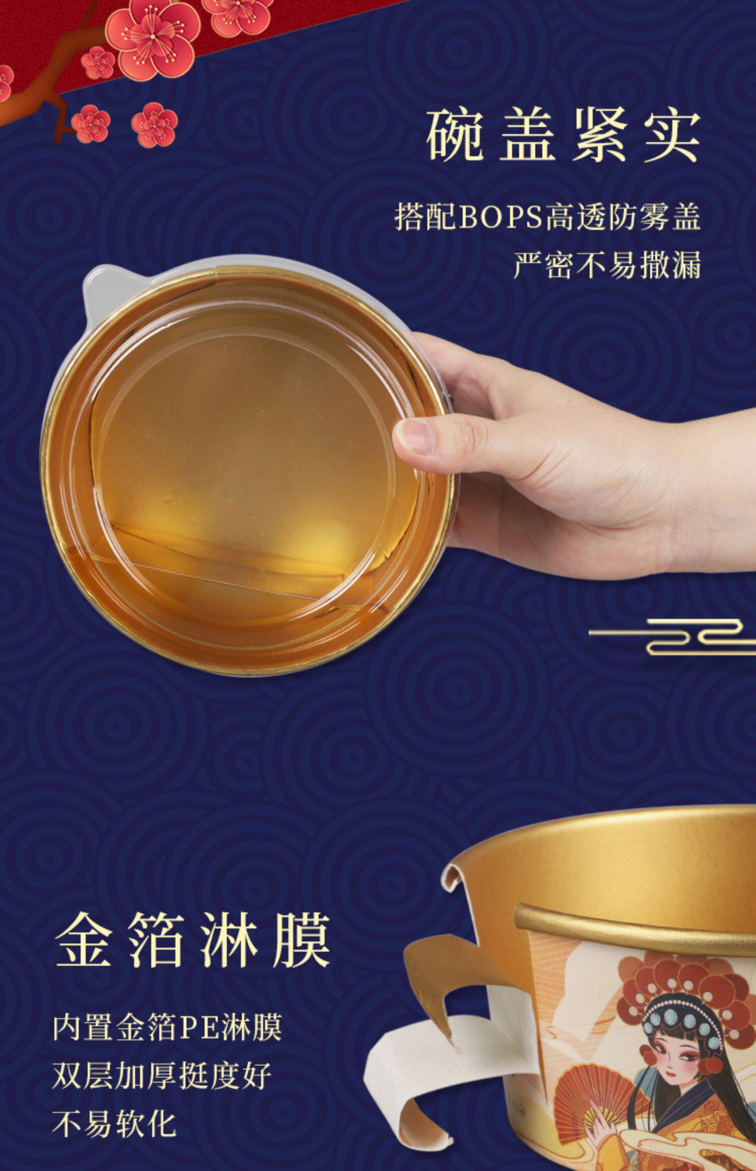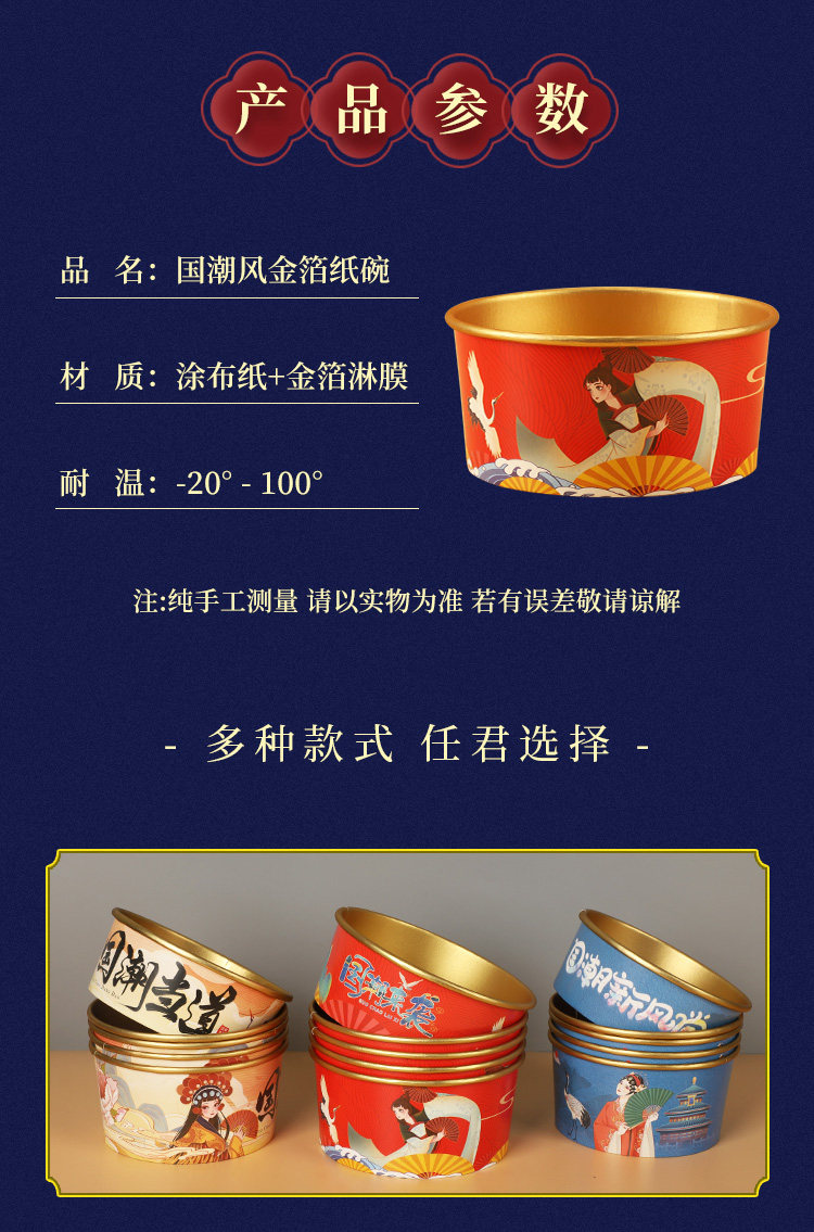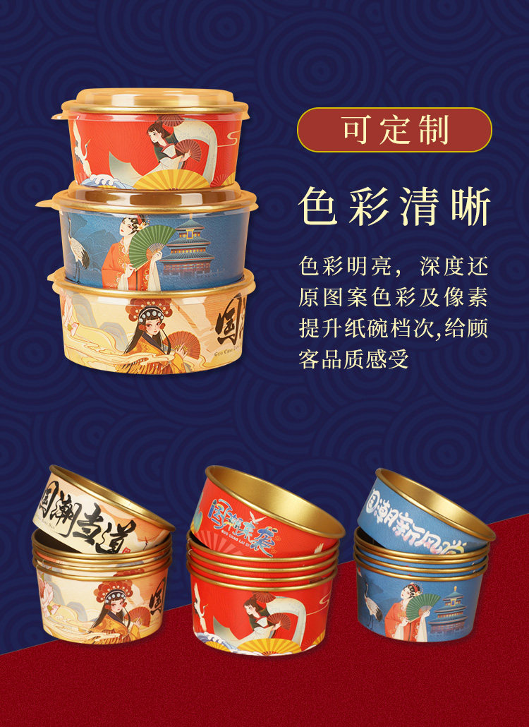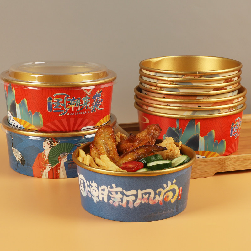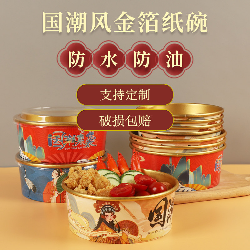 - 1000 мл [Guo Chao Dangdao Gold Foil Paper Bowl+Cover]