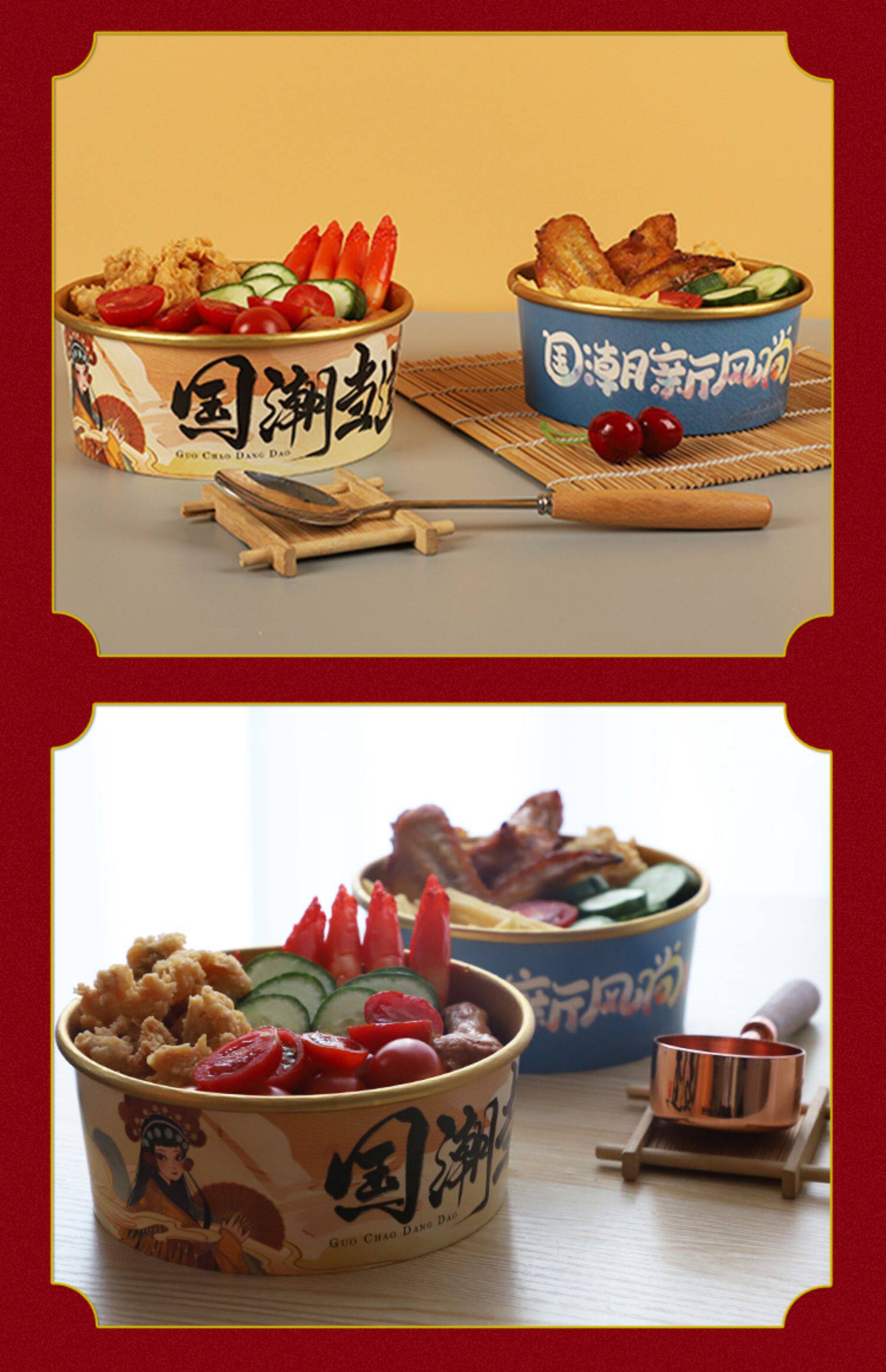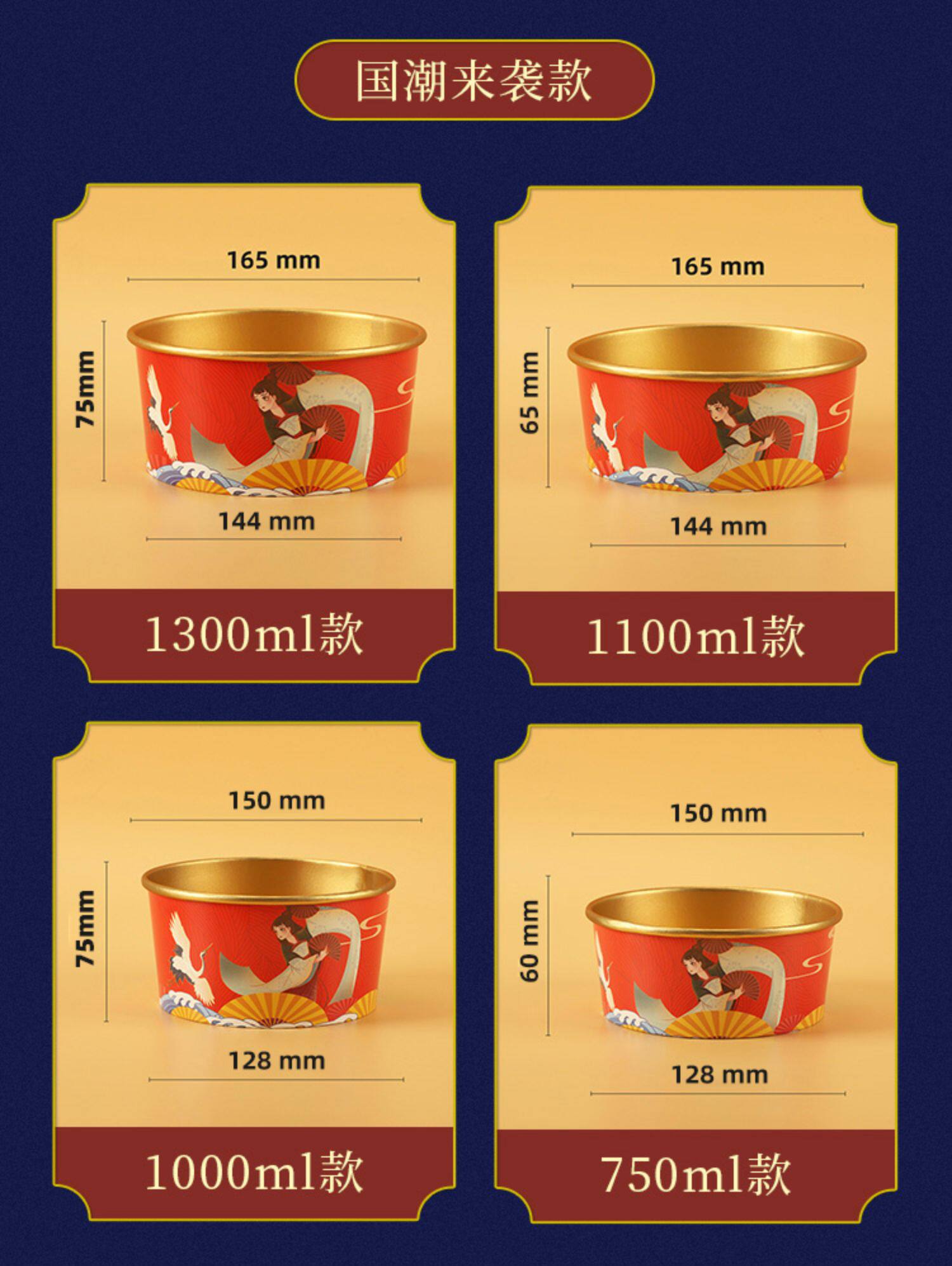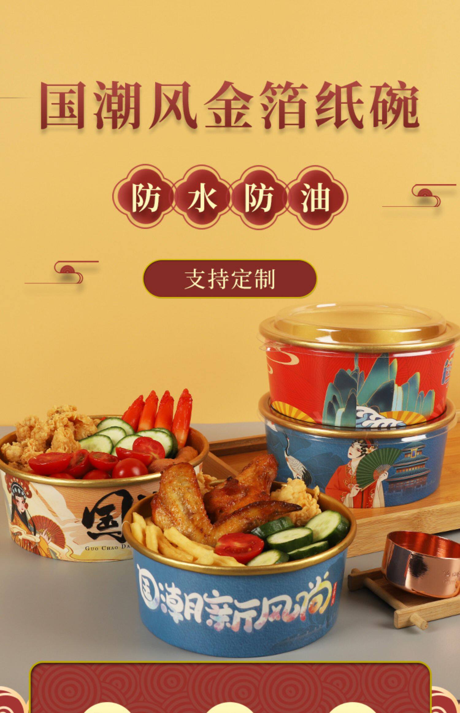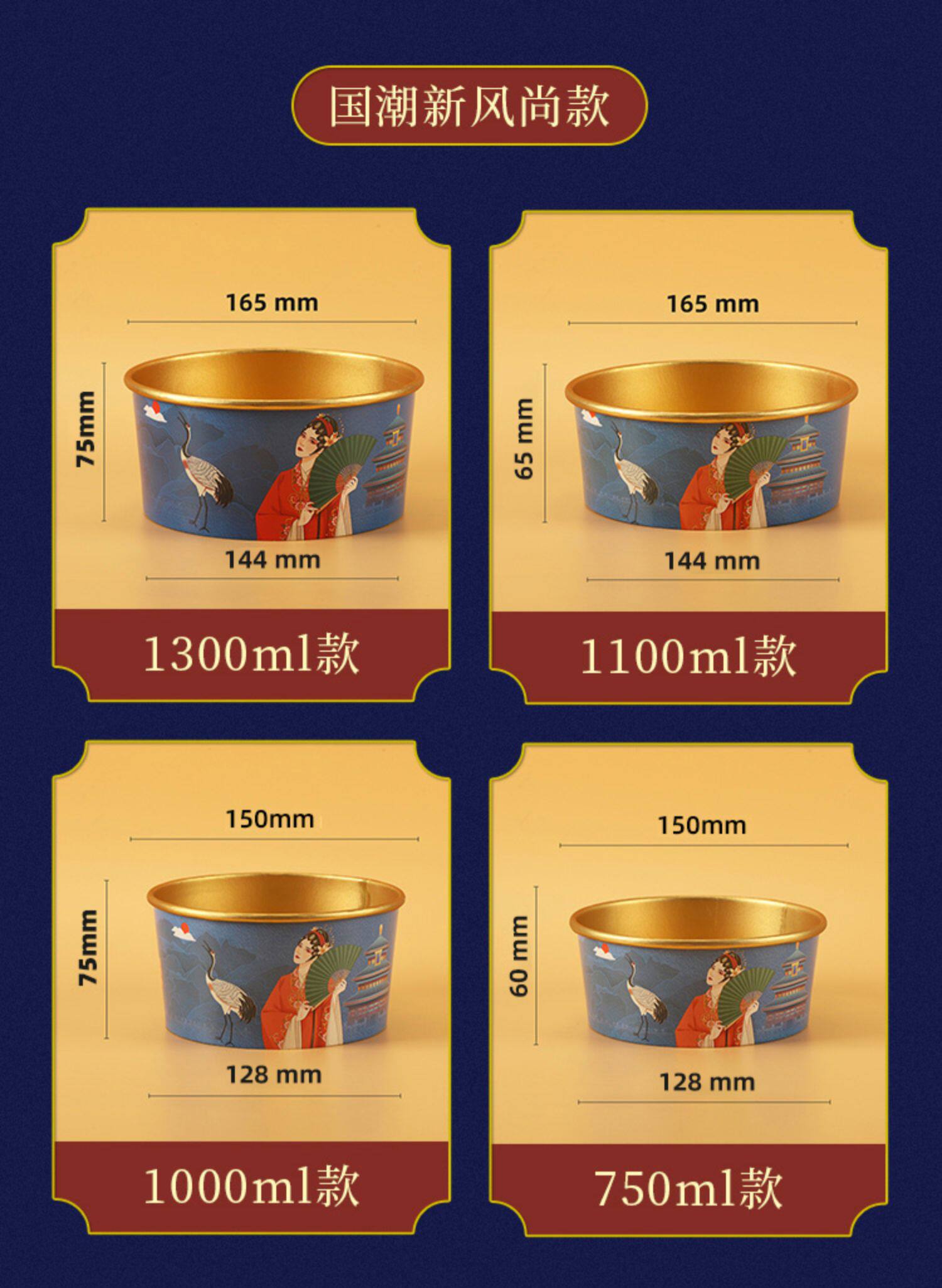 - 1000 мл [Guo Chao Dangdao Gold Foil Paper Bowl+Cover]
