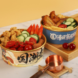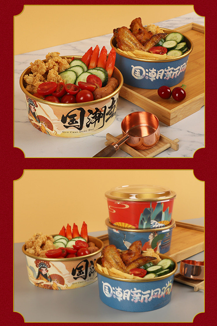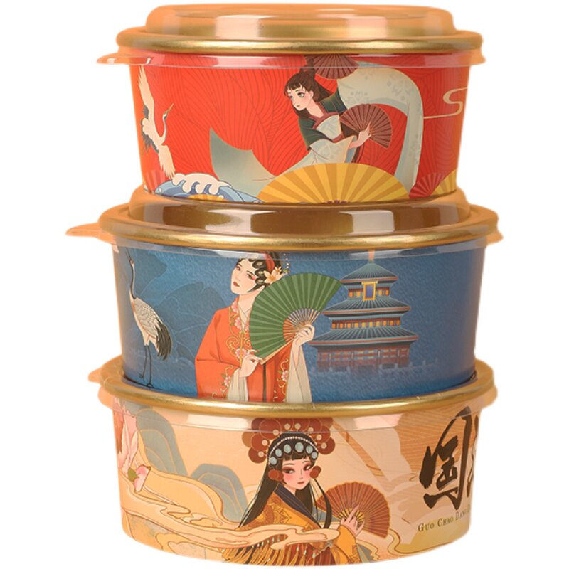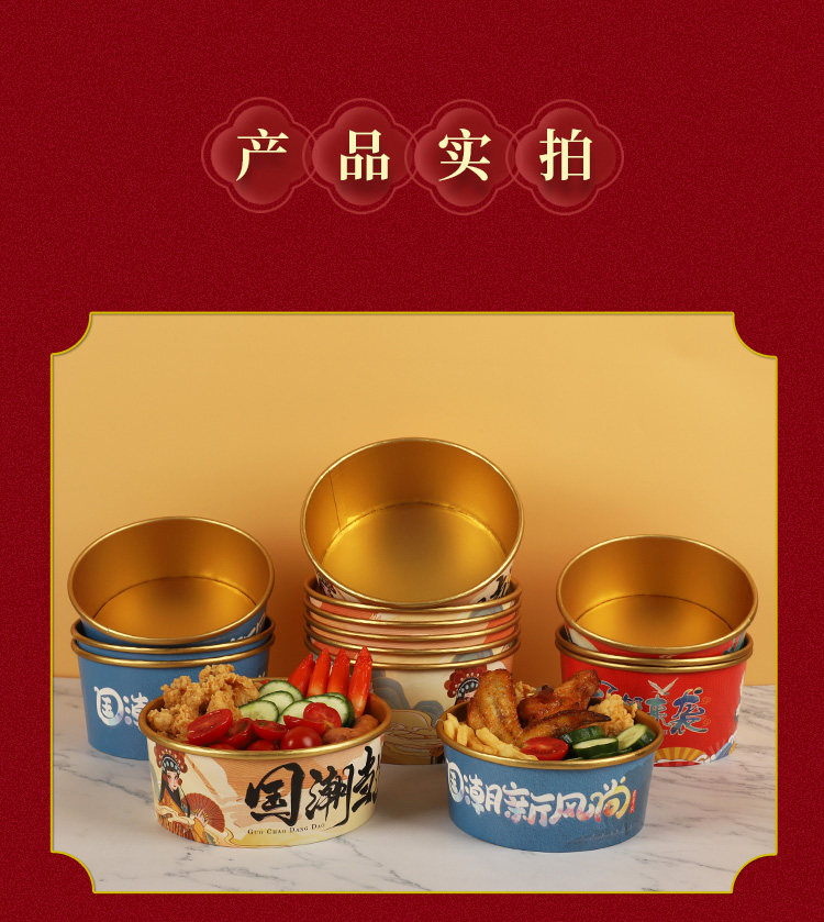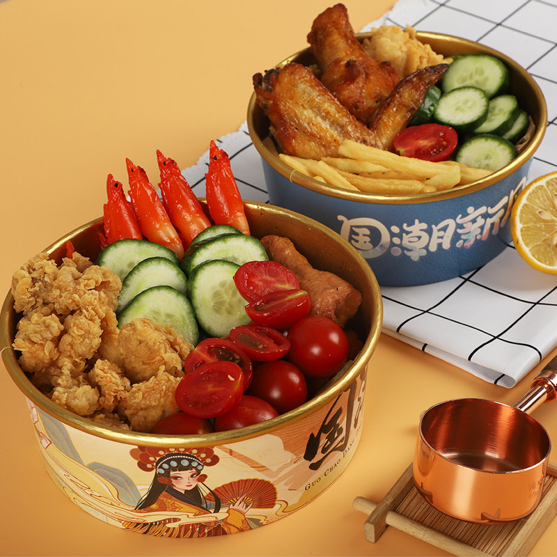 Одноразовая миска с бумажной миской, национальная приливная золотая фольга с круговым фруктовым салатом суп рис мгновенный лапшу с лапшой с высокой упакованной ланч -коробкой