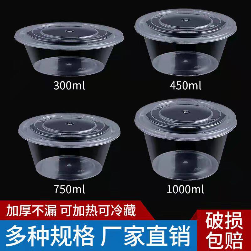 Одноразовая коробка для ланч -коробки круглый поясной пояс 1000 мл Круглая чаша Прозрачная вынос быстрого питания суп из супа с лапшой.