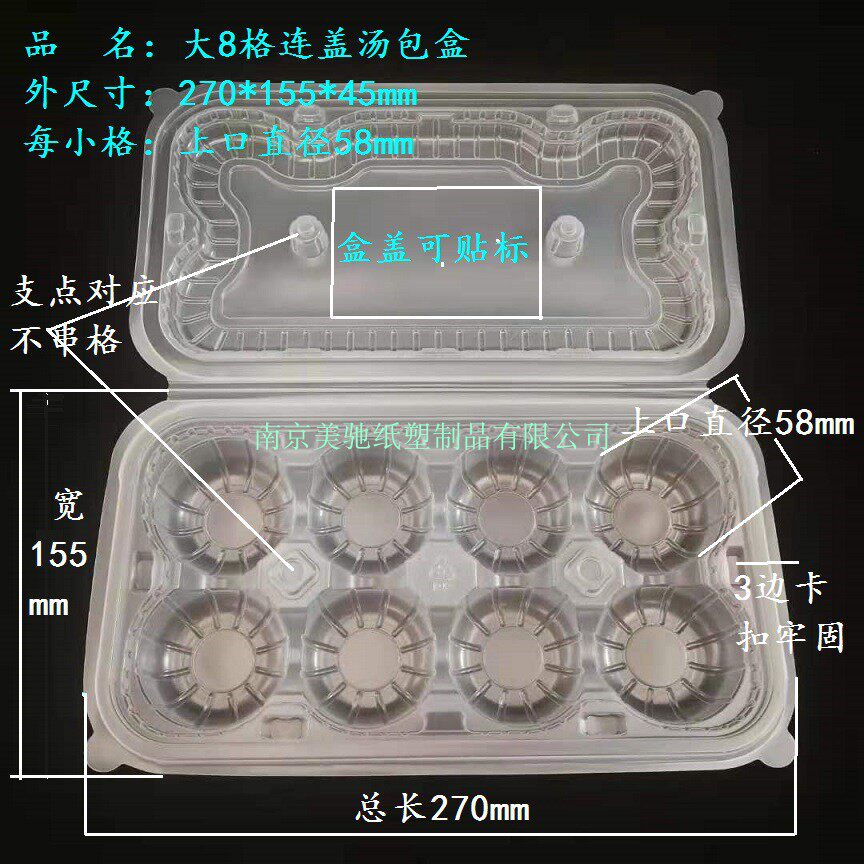 Стороалонгбао упаковочная коробка PP Материал одноразовый, подключенный к прозрачной подкладке 8 сетки суп -пакет 6 булочек, креветки, для приготовления группы Maiqing