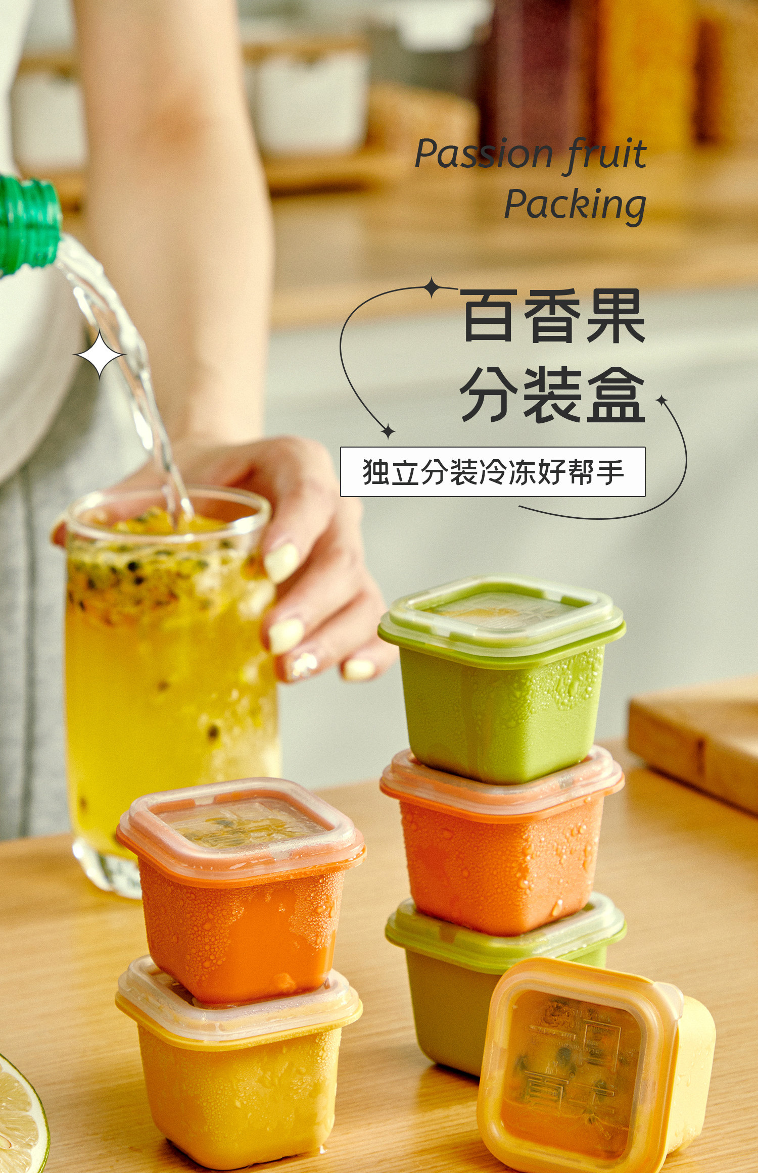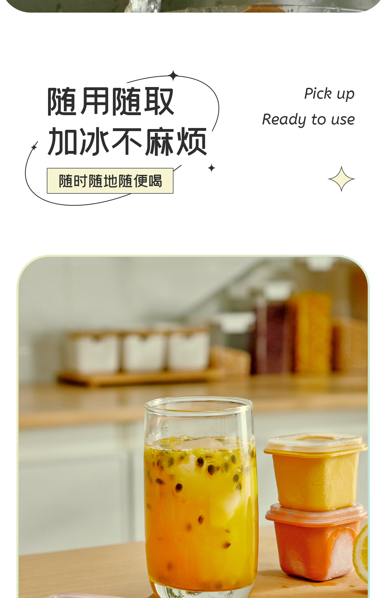 Тара с маракуйей с кумватом, фруктовый чай, одноразовая коробка, кубики льда, форма