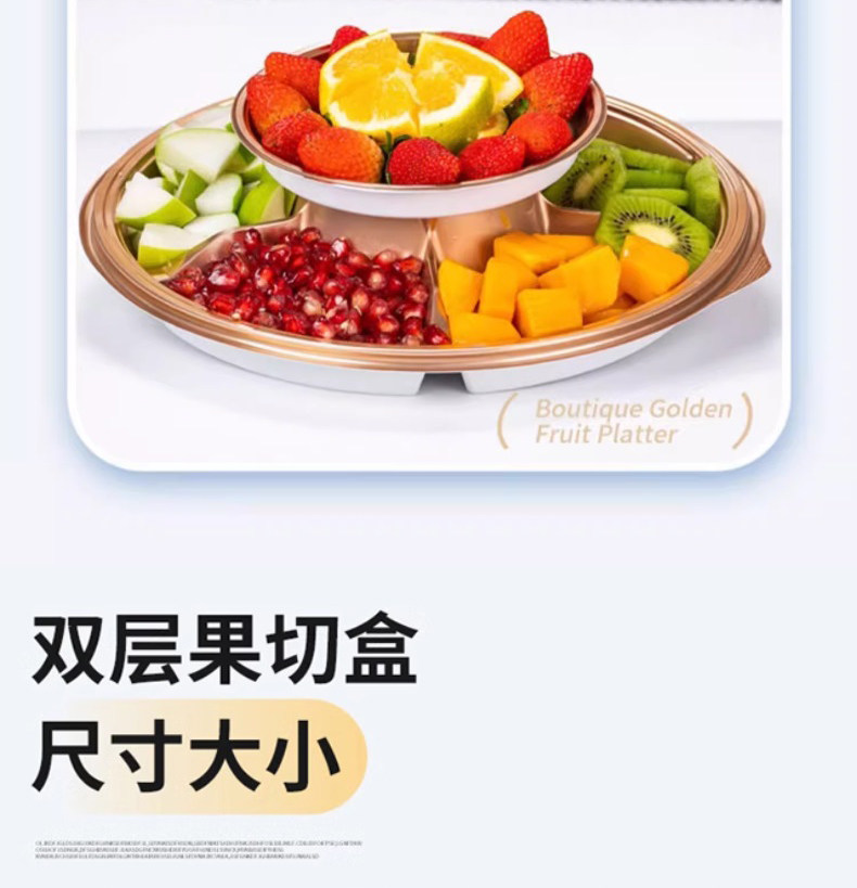 Упаковочная коробка для фруктов из шести частей, упаковочная коробка для нарезанных фруктов, золотая круглая одноразовая тарелка для фруктов, двухслойные суши с крышкой