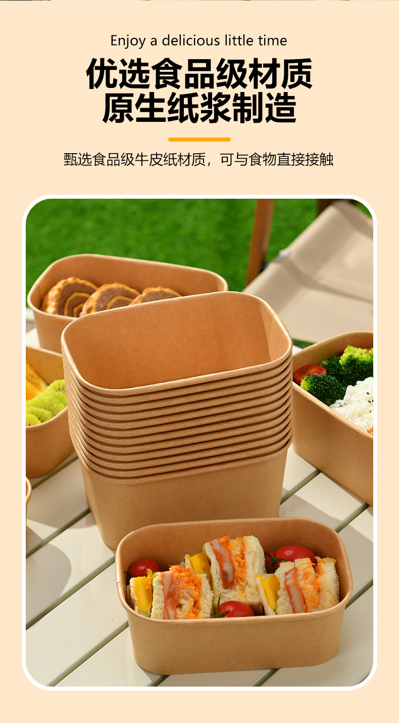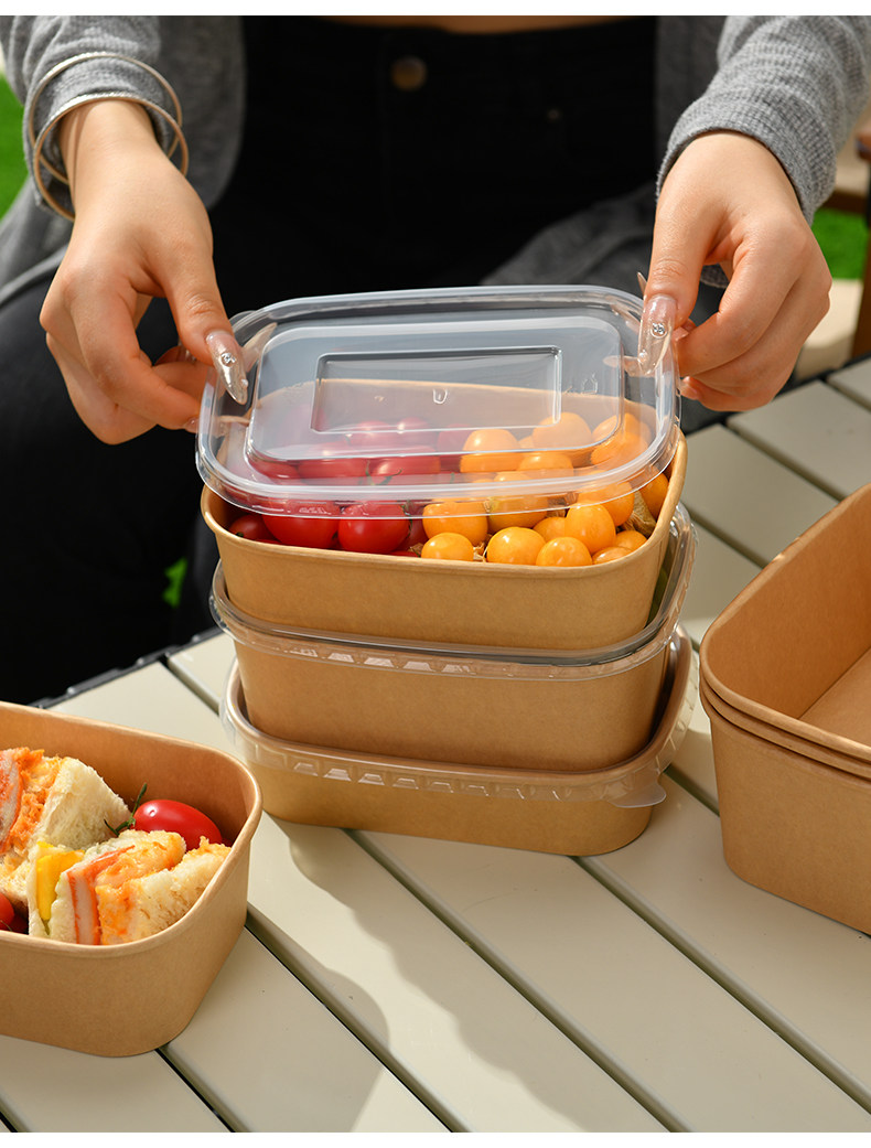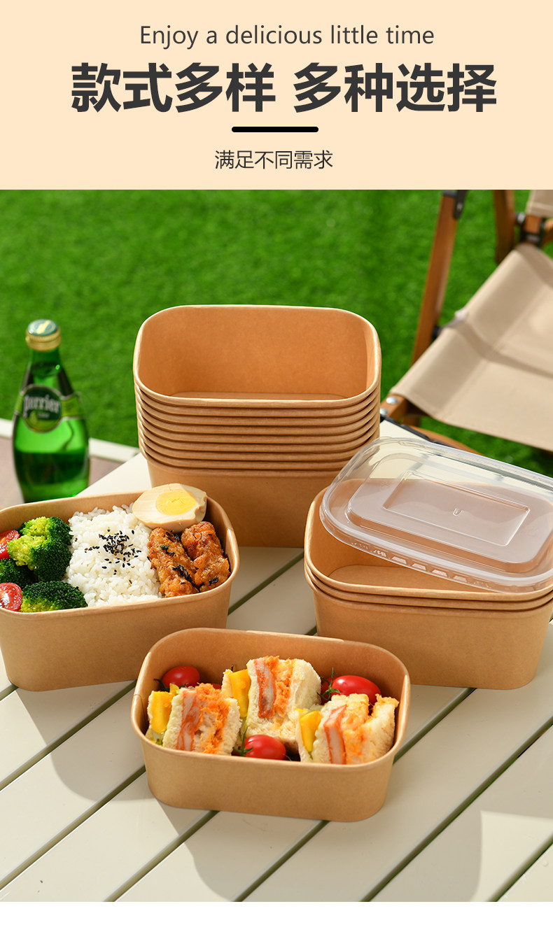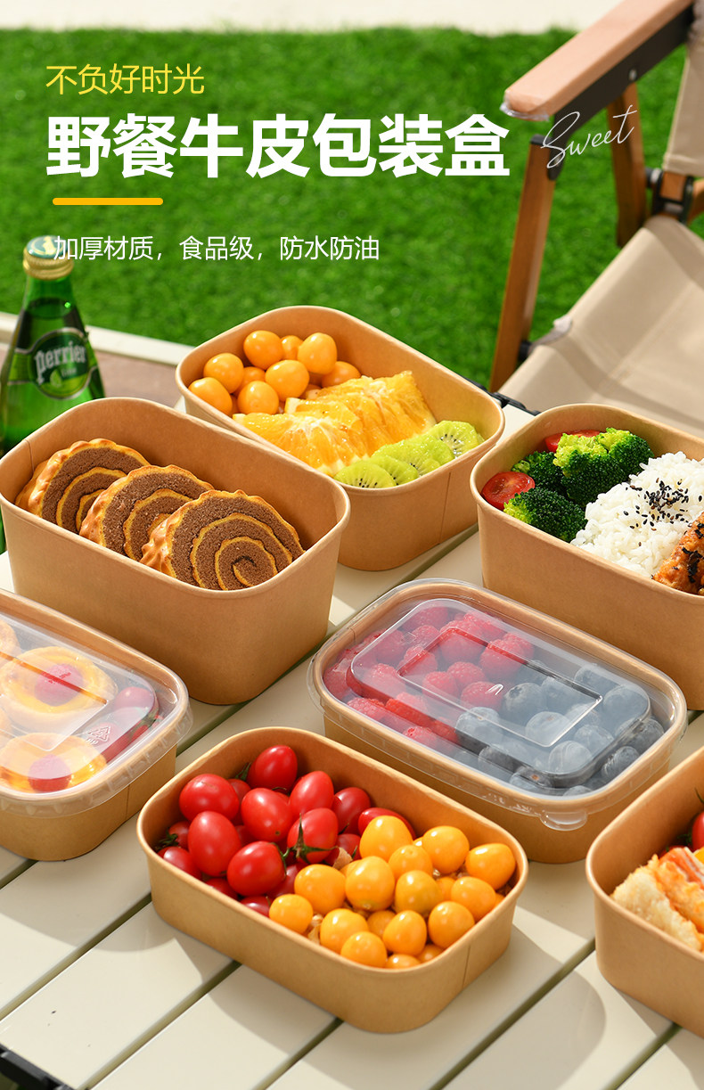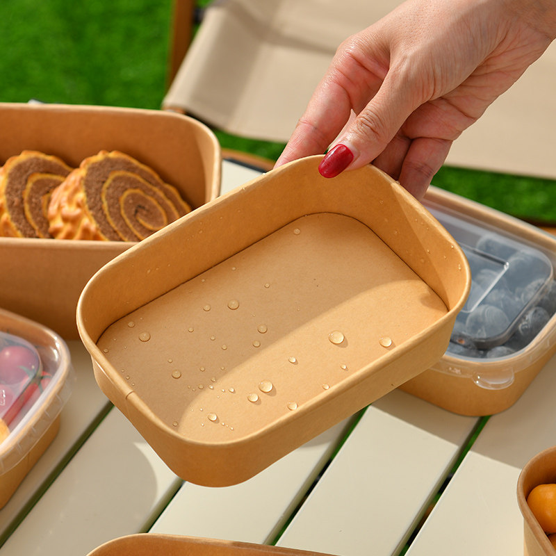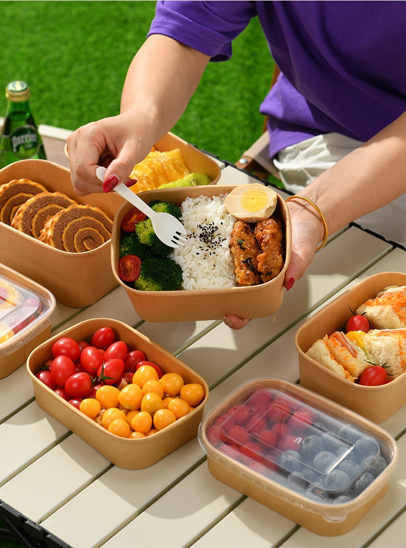 Одноразовый ланч-бокс, пищевой упаковочный ящик для фруктов, ланч-бокс для пикника, крафт-бумага, миска для риса с крышкой, бумажный ланч-бокс