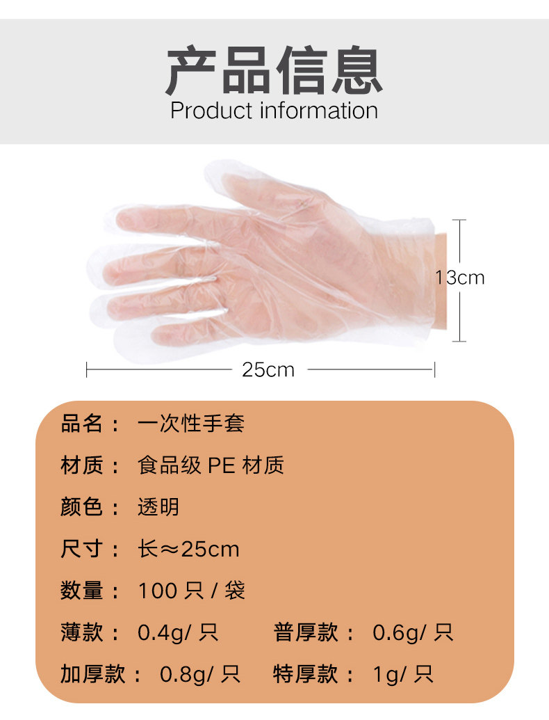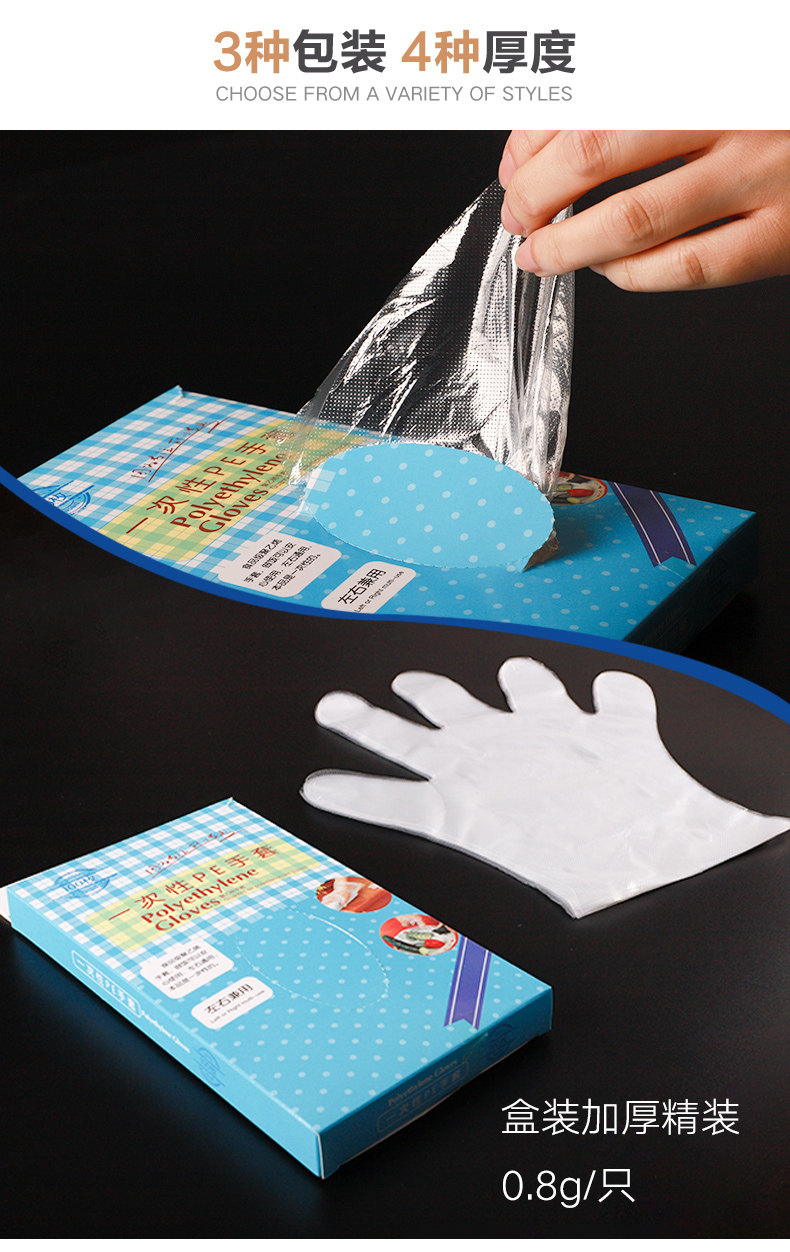 Одноразовые перчатки, прозрачная пластиковая маска для рук для коммерческого использования, увеличенная толщина