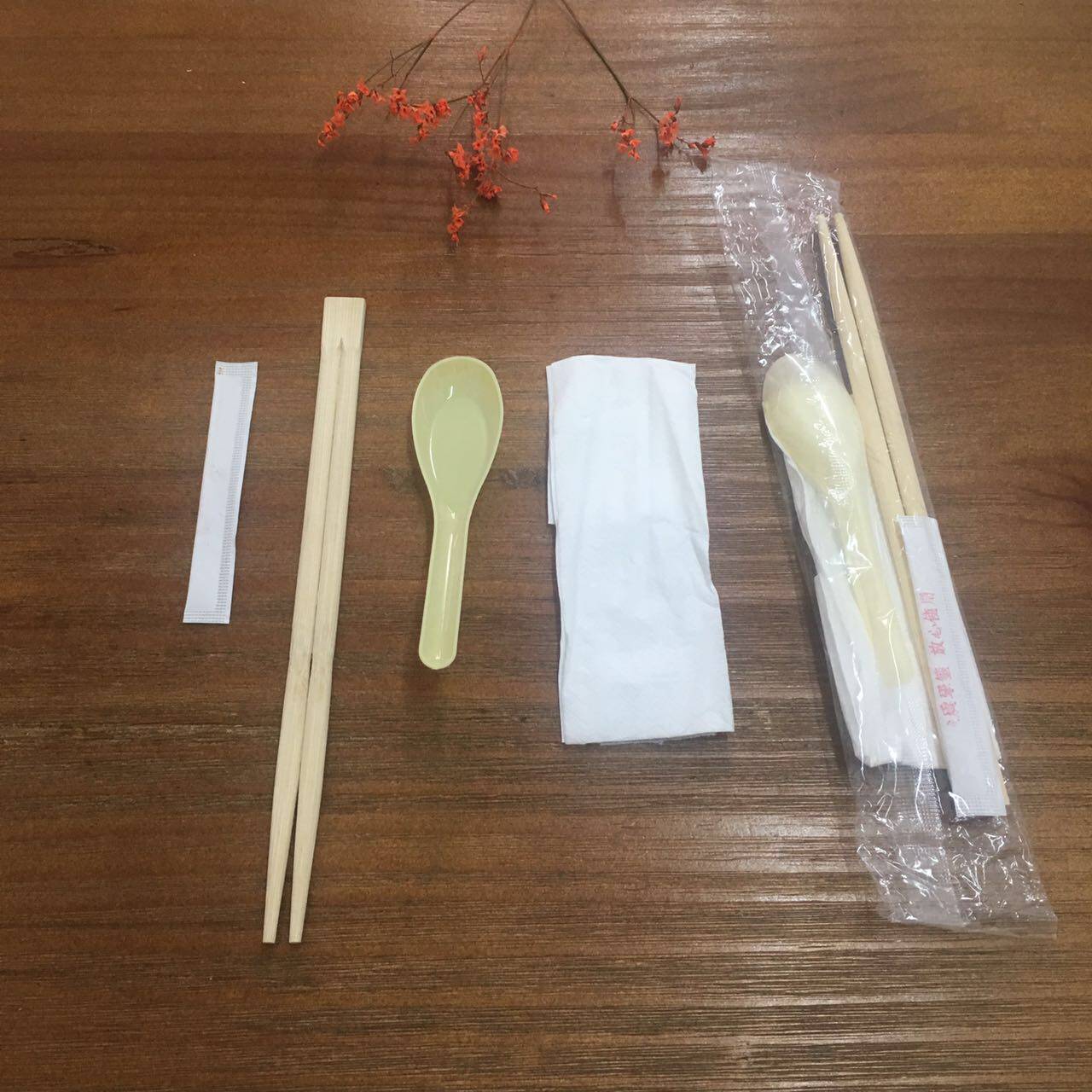 Одноразовая посуда, комплект, пакет, палочки для еды, салфетки, 4 шт
