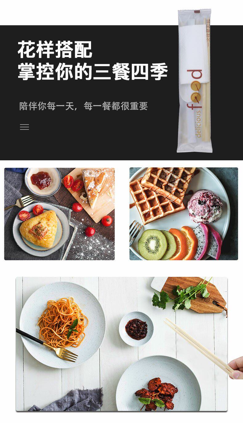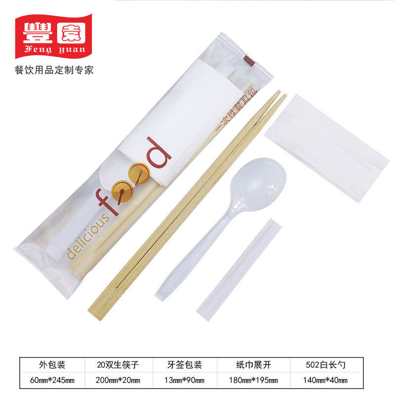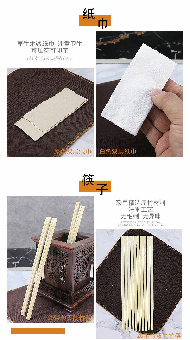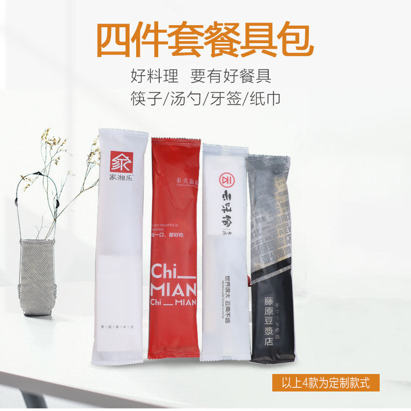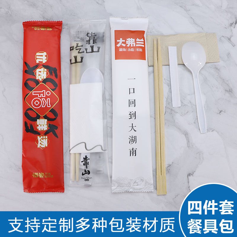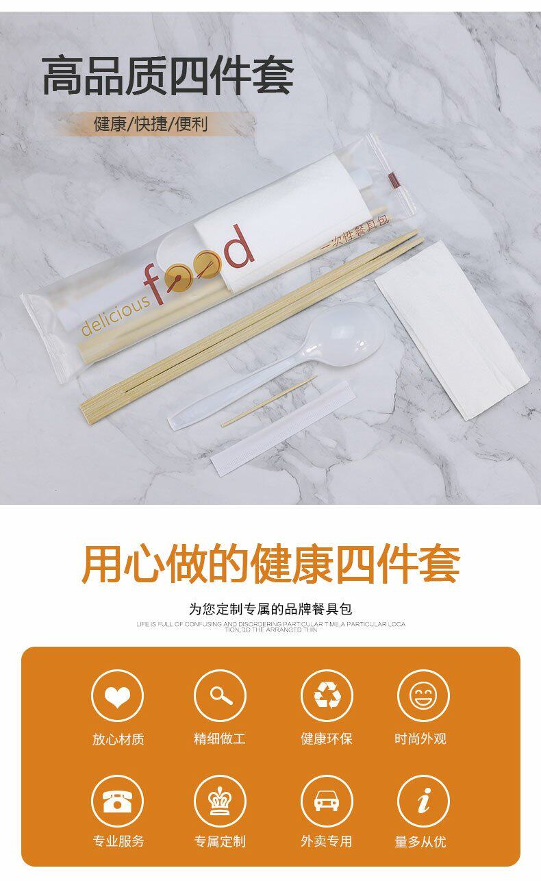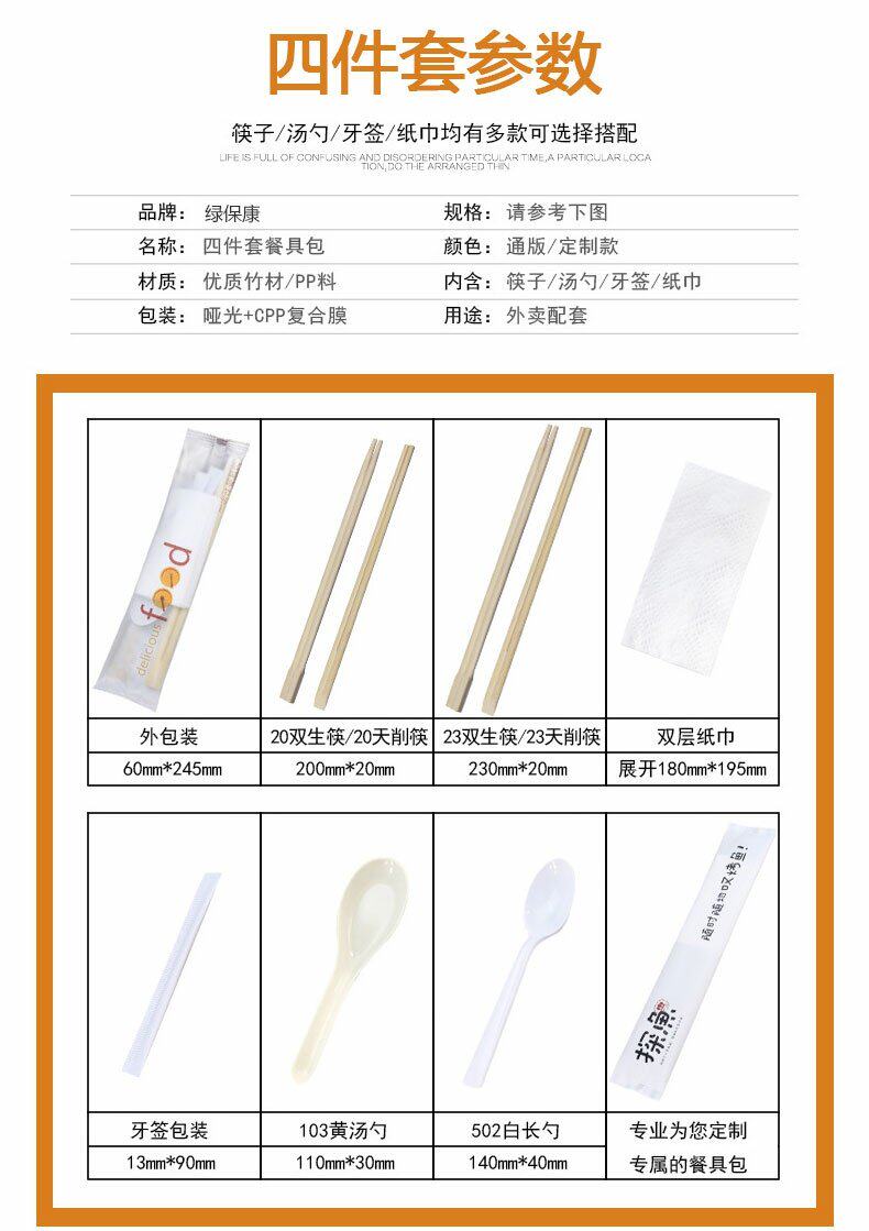 绿保康 Одноразовые палочки для еды, комплект, пакет, посуда, салфетки, ложка, 4 предмета, делается под заказ