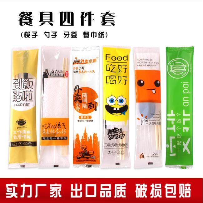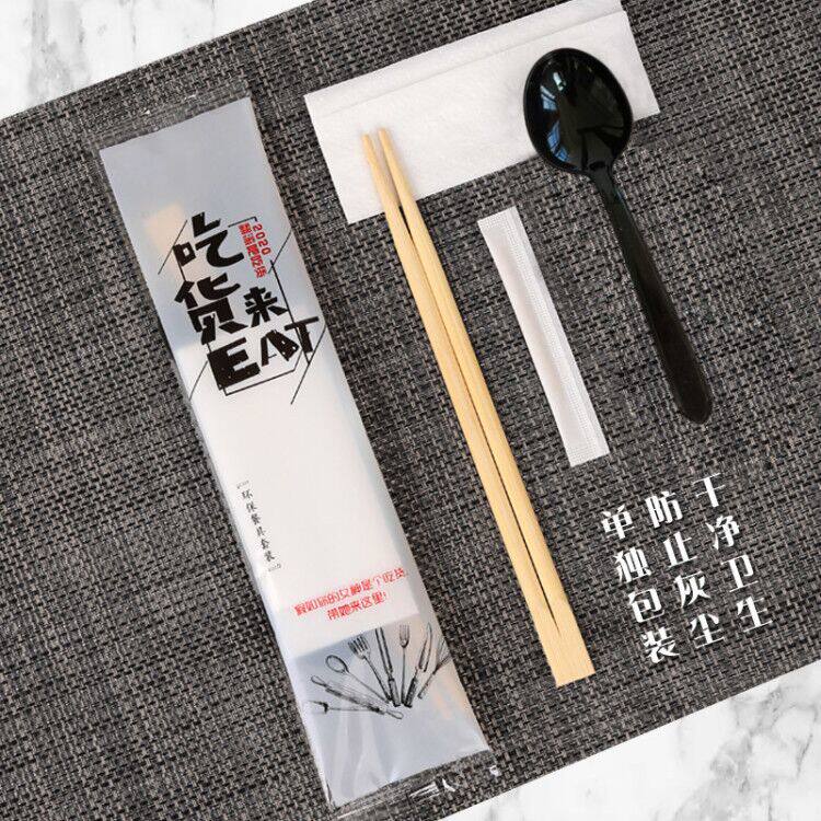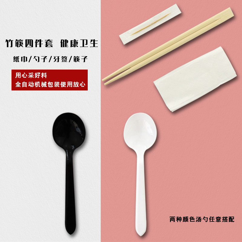 Одноразовые палочки для еды, комплект, ложка, пакет, посуда, 4 предмета, 3 предмета, «три в одном»