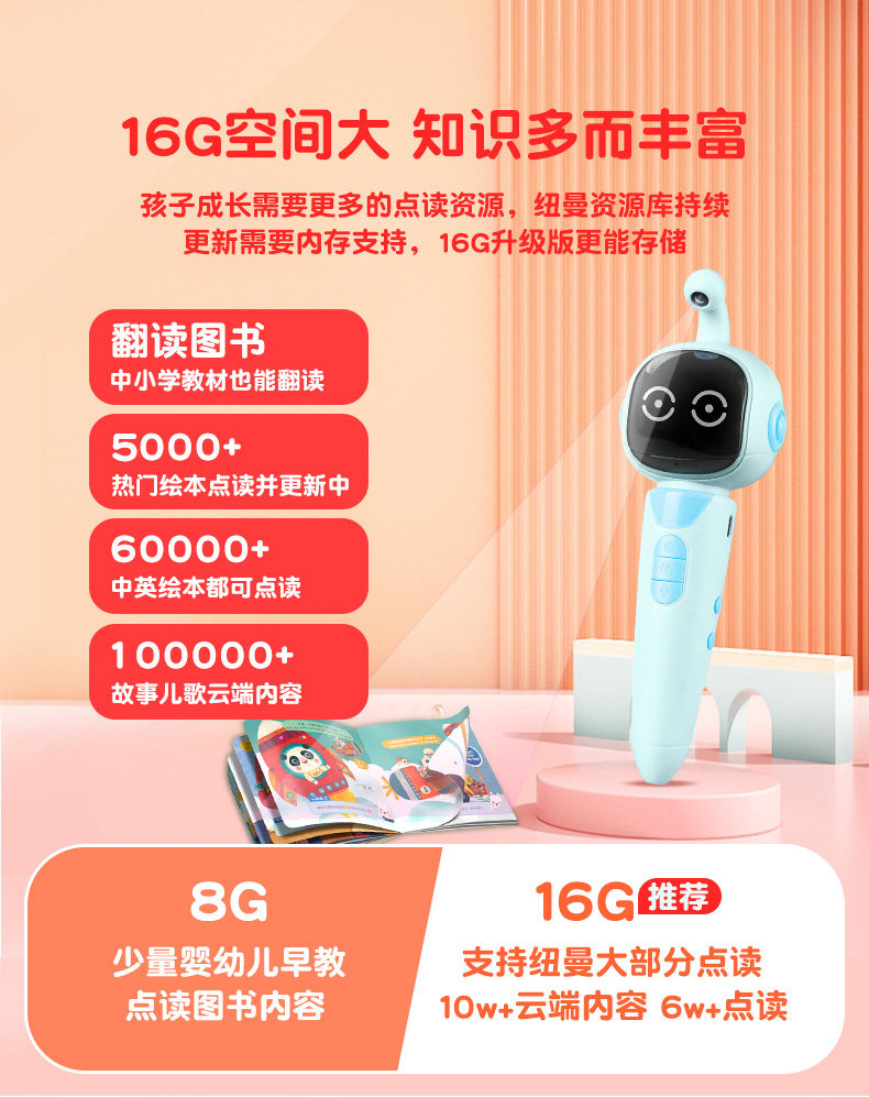 纽曼 Ручка для чтения, книга рассказов, универсальная книга с картинками, читающая машина для раннего возраста, машина раннего образования, чтение для школьников, словарная карточка, 3 лет, английский, грамотность, издает звуки, китаеведение