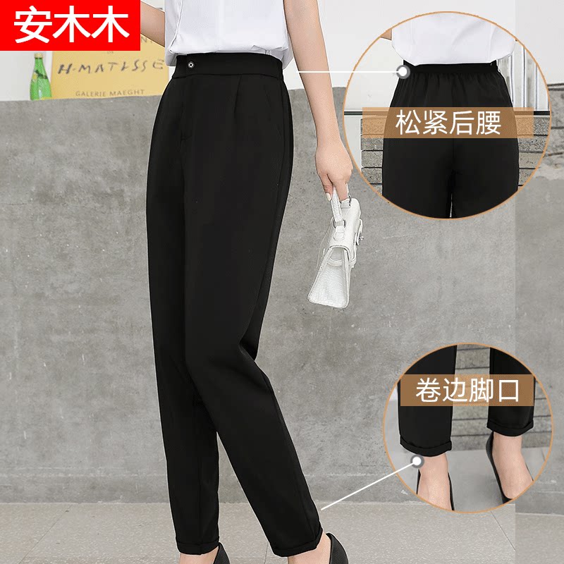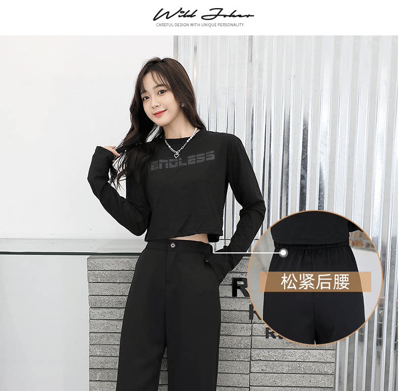 Черные демисезонные осенние штаны, демисезонный костюм для отдыха, высокая талия, свободный прямой крой