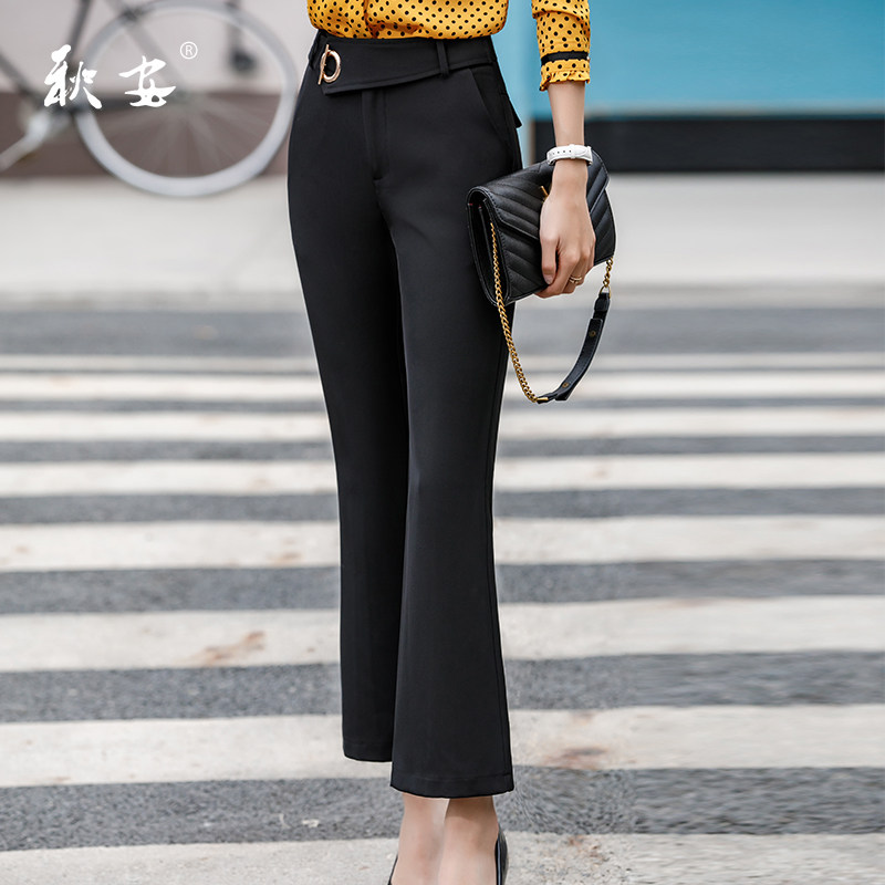Черные осенние штаны для отдыха, штаны-клёш, высокая талия, свободный прямой крой, оверсайз