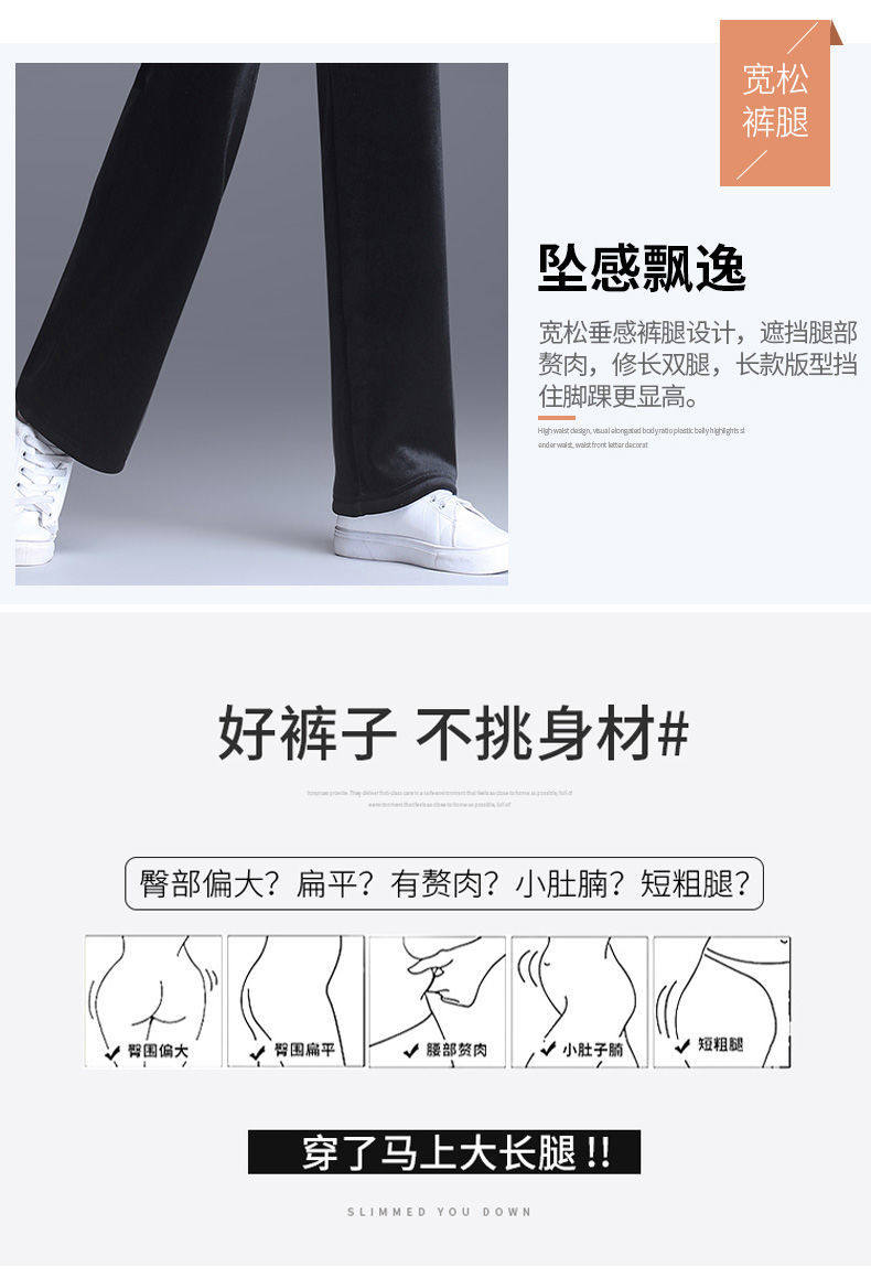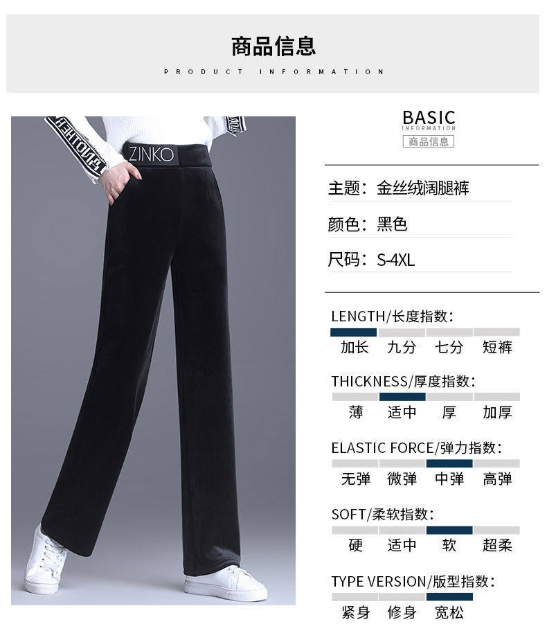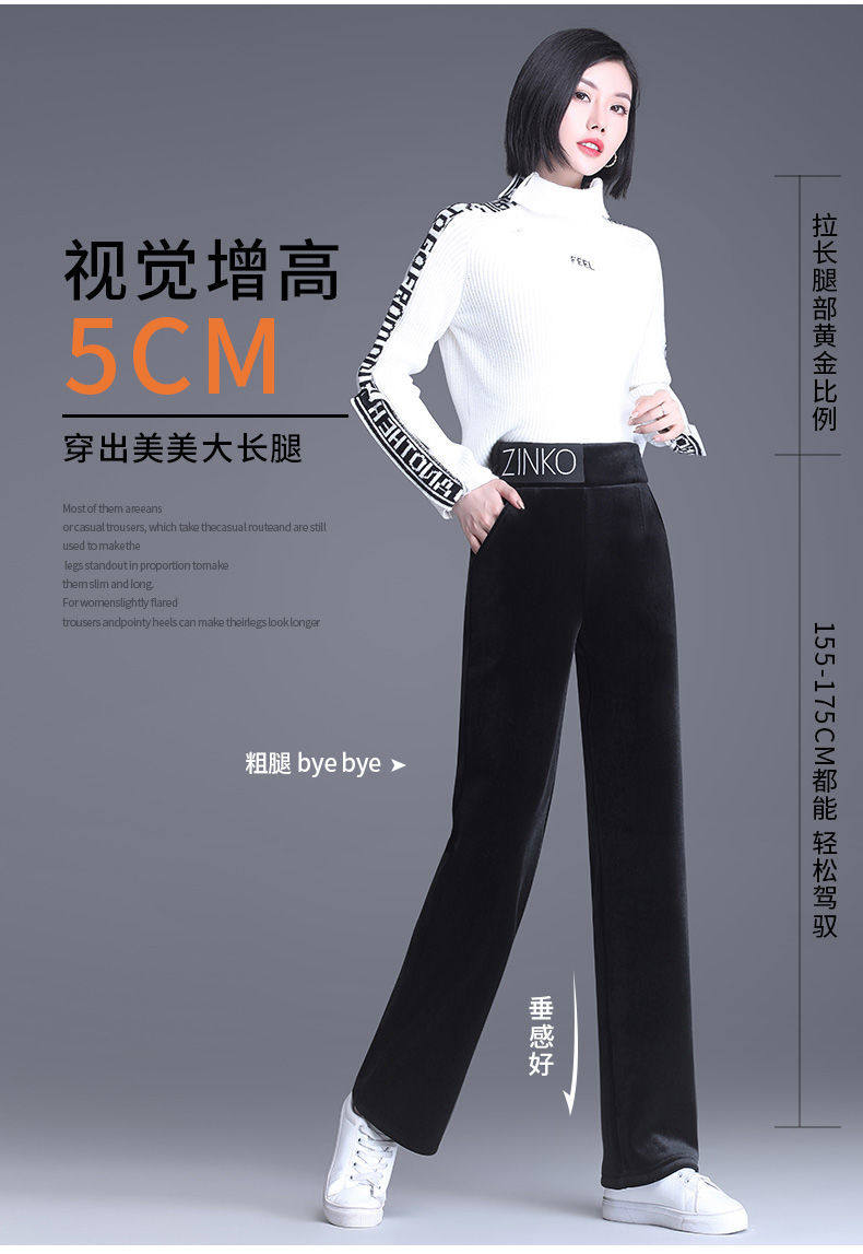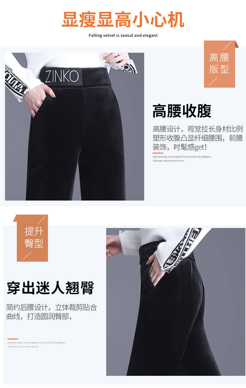 Утепленные бархатные черные штаны для отдыха, коллекция 2021, высокая талия, свободный прямой крой