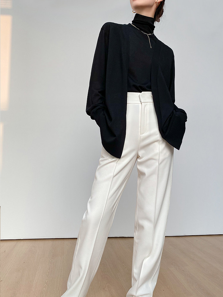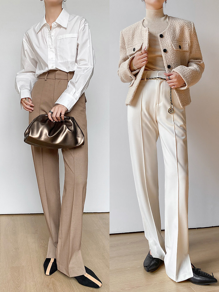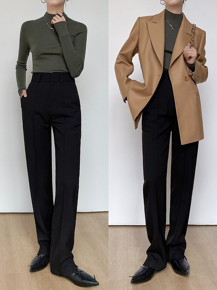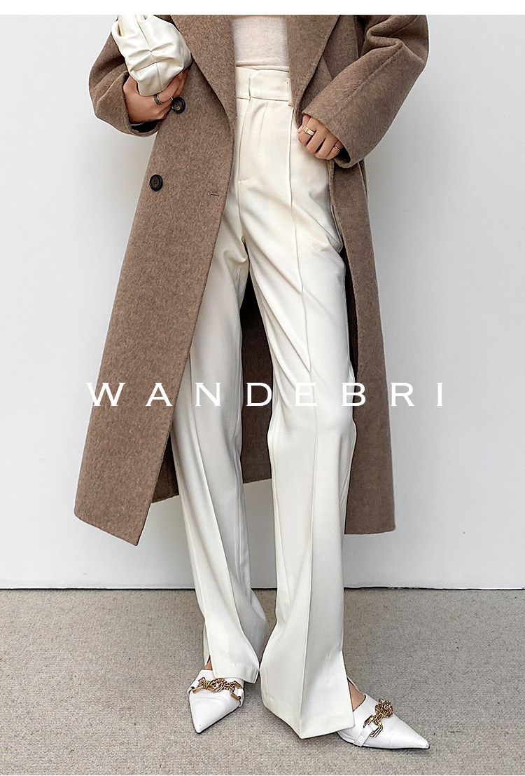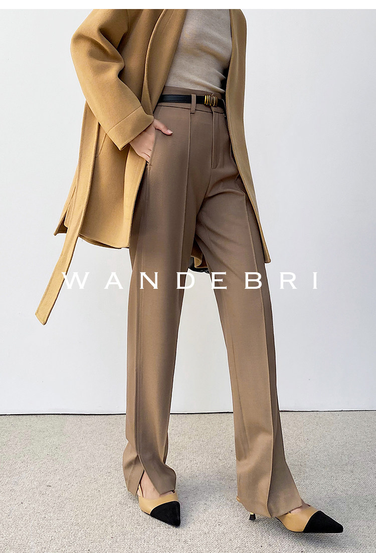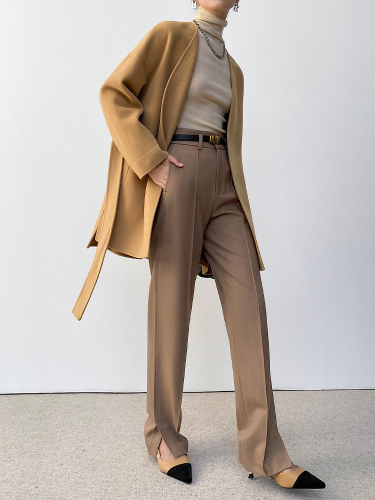 Хаки демисезонный шерстяной комплект, элитные штаны, высокая талия, свободный прямой крой
