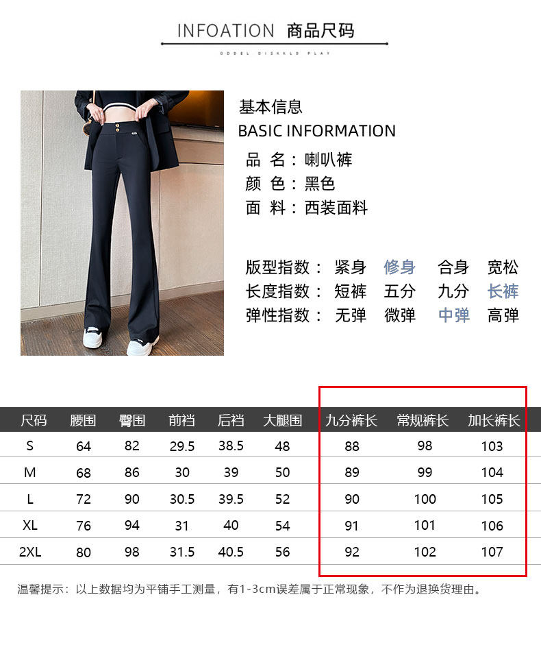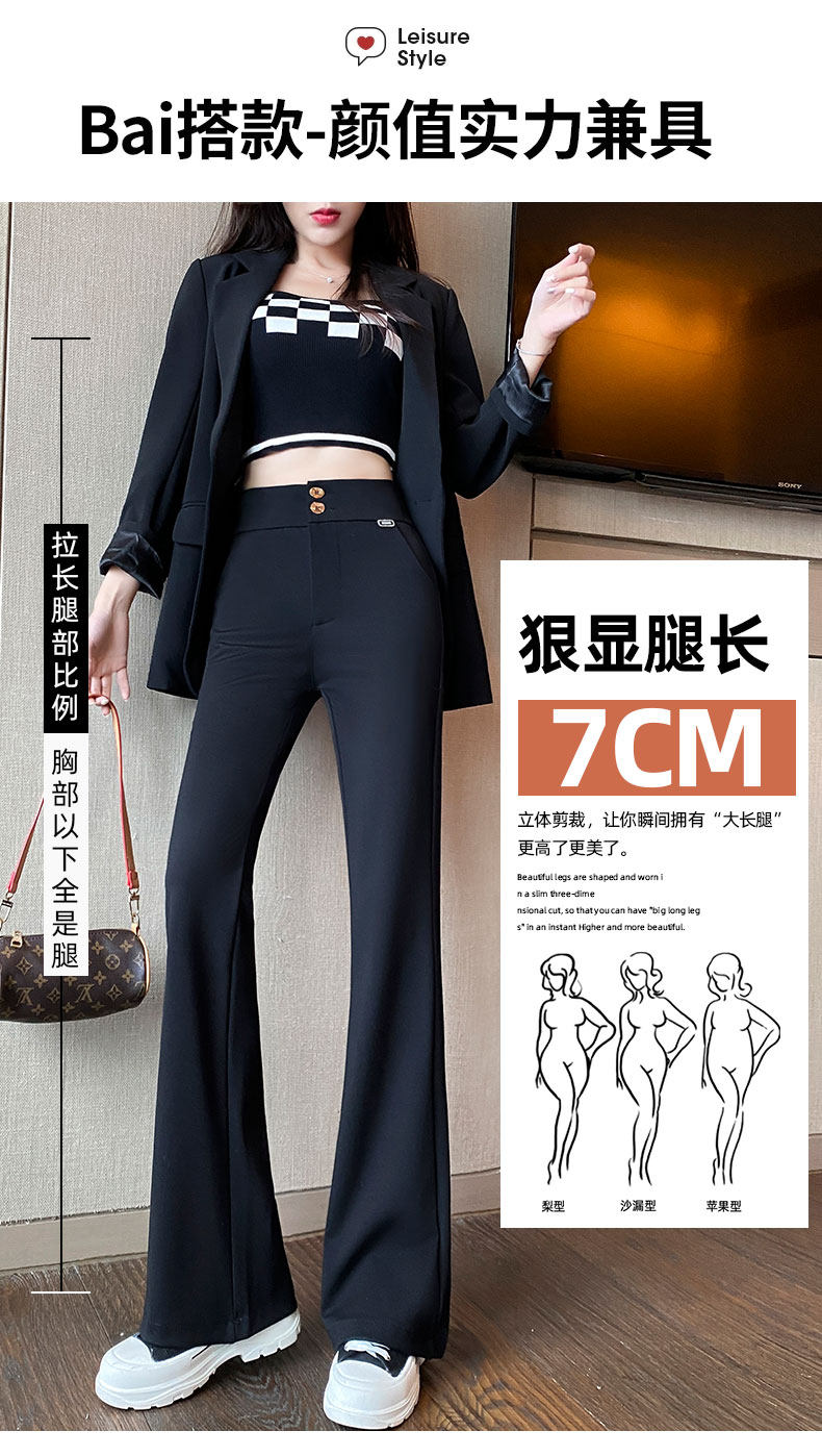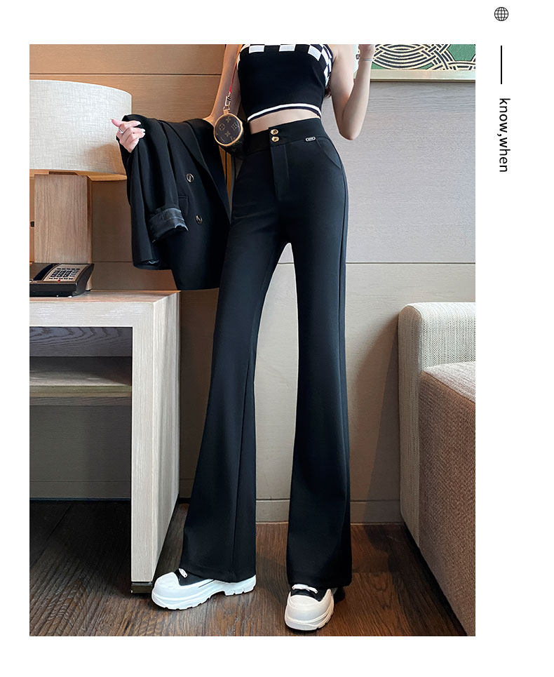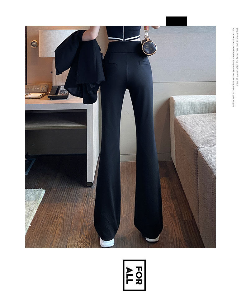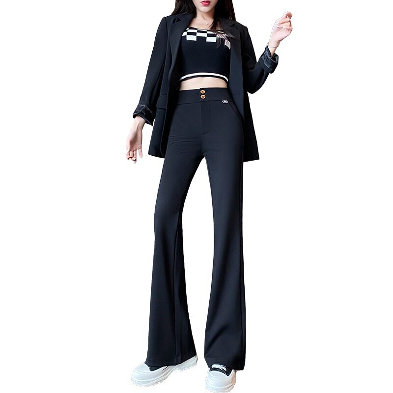 Костюм, осенние штаны, черные штаны-клёш для отдыха, высокая талия