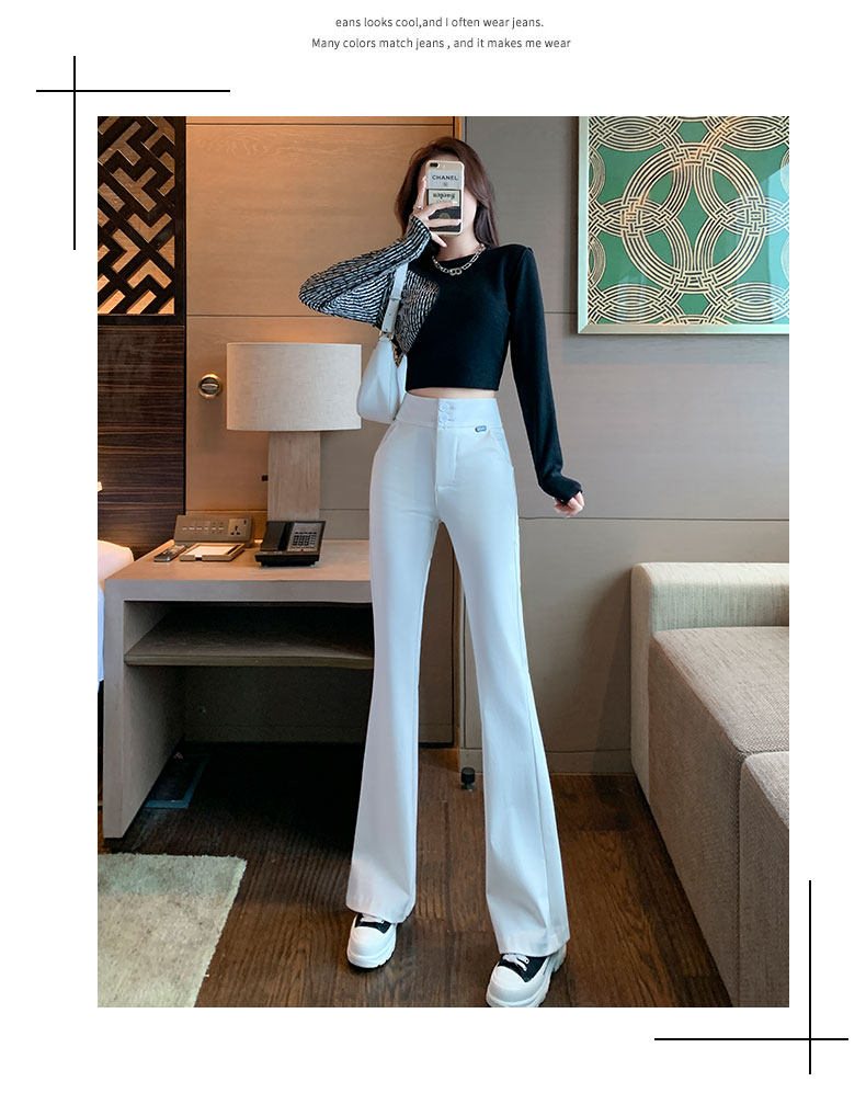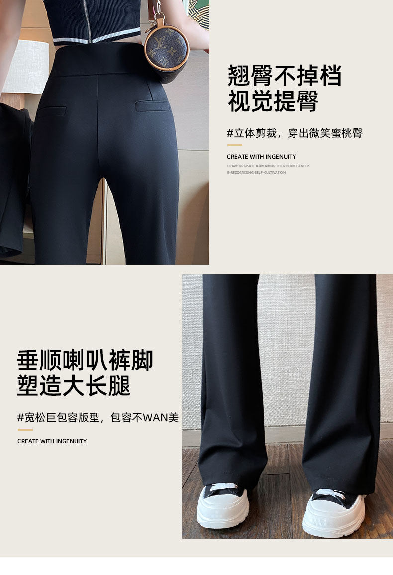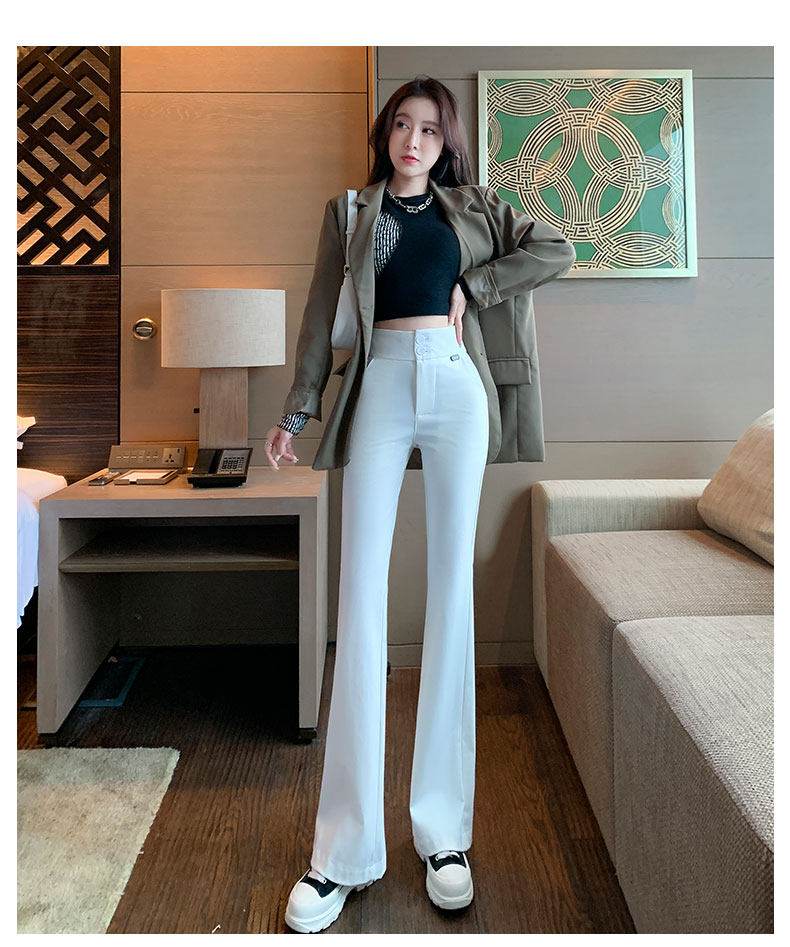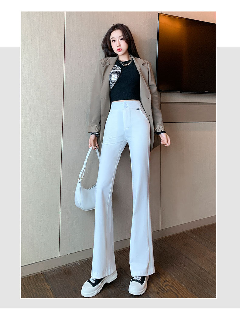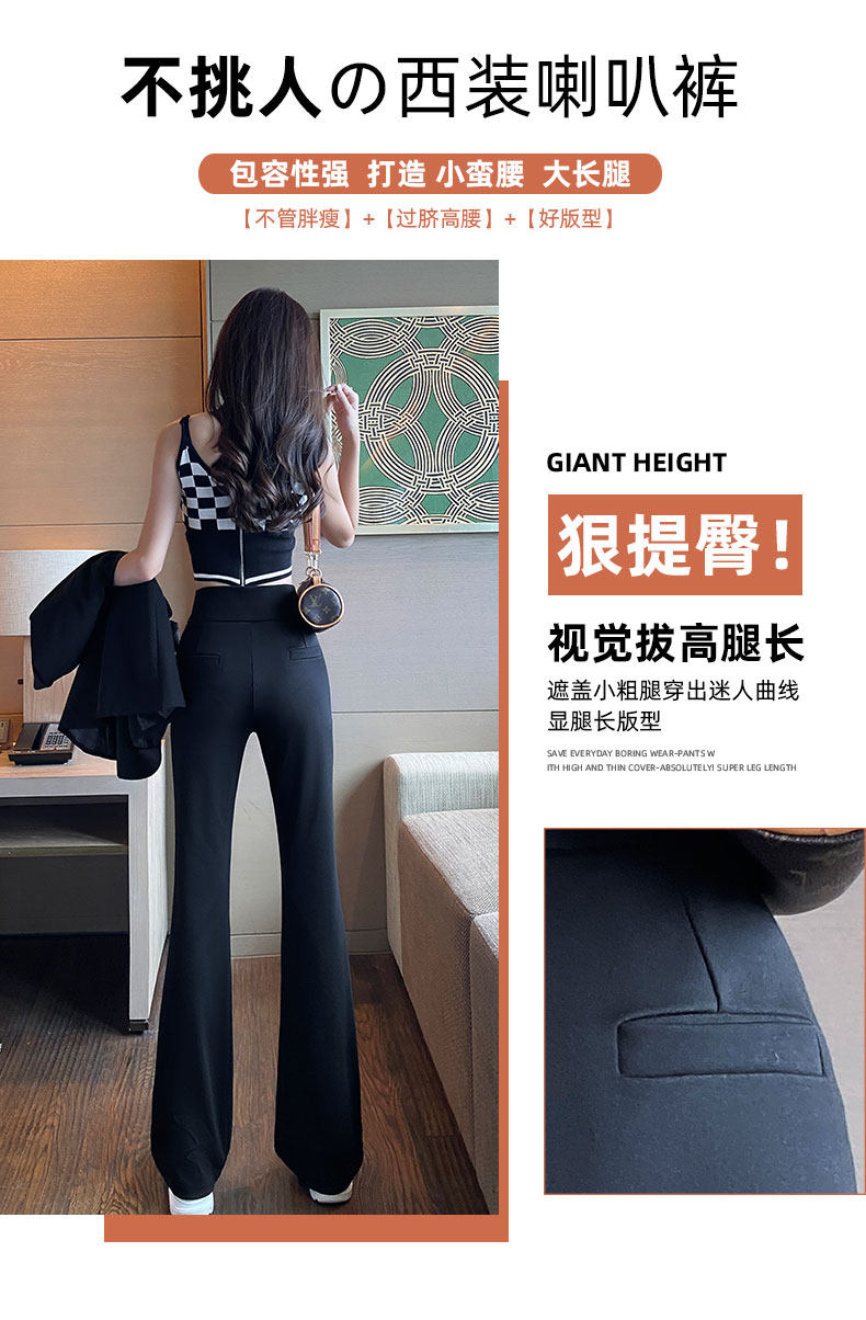 Костюм, осенние штаны, черные штаны-клёш для отдыха, высокая талия