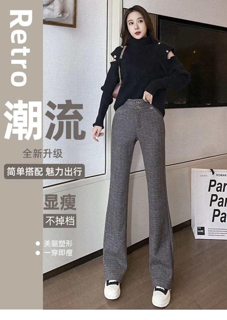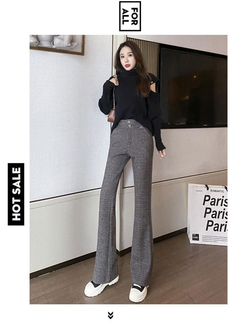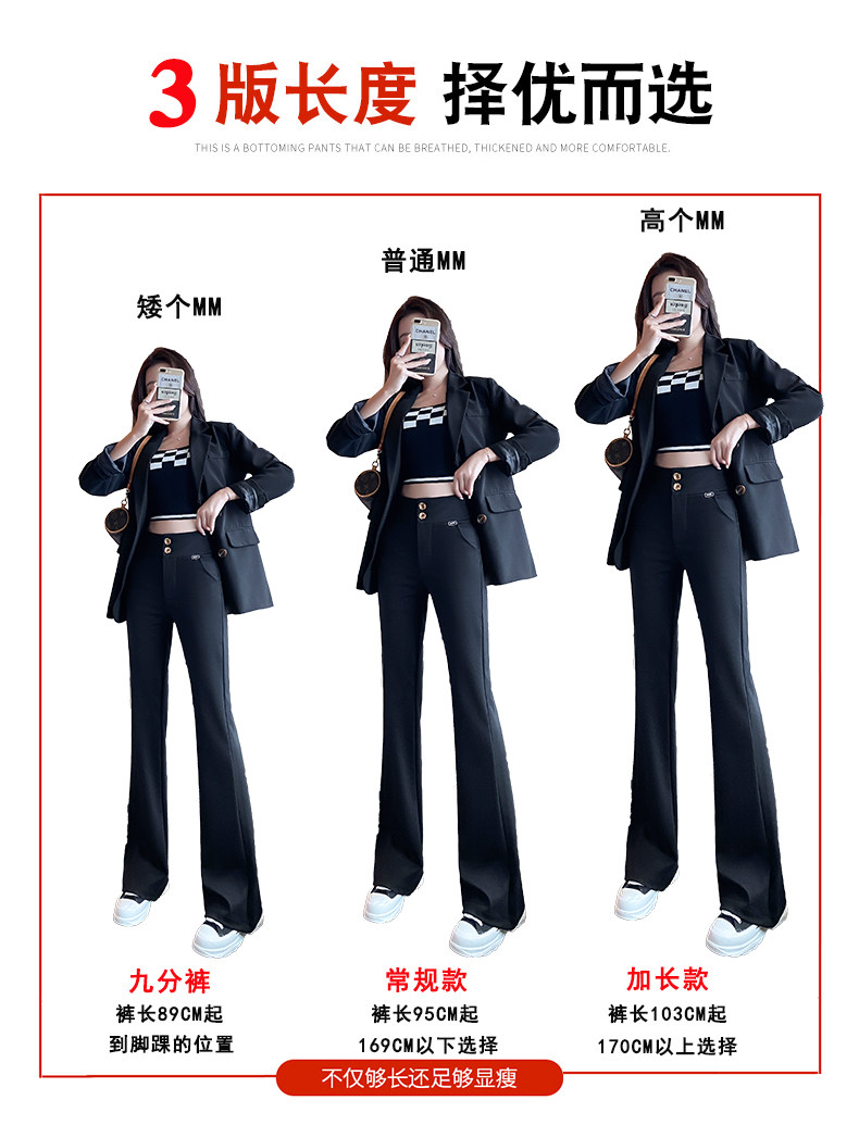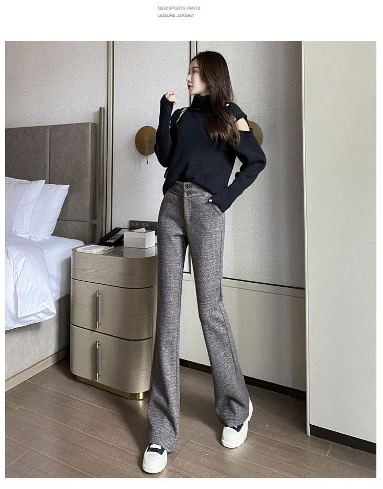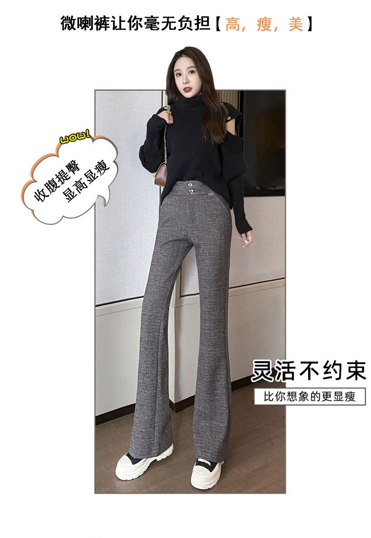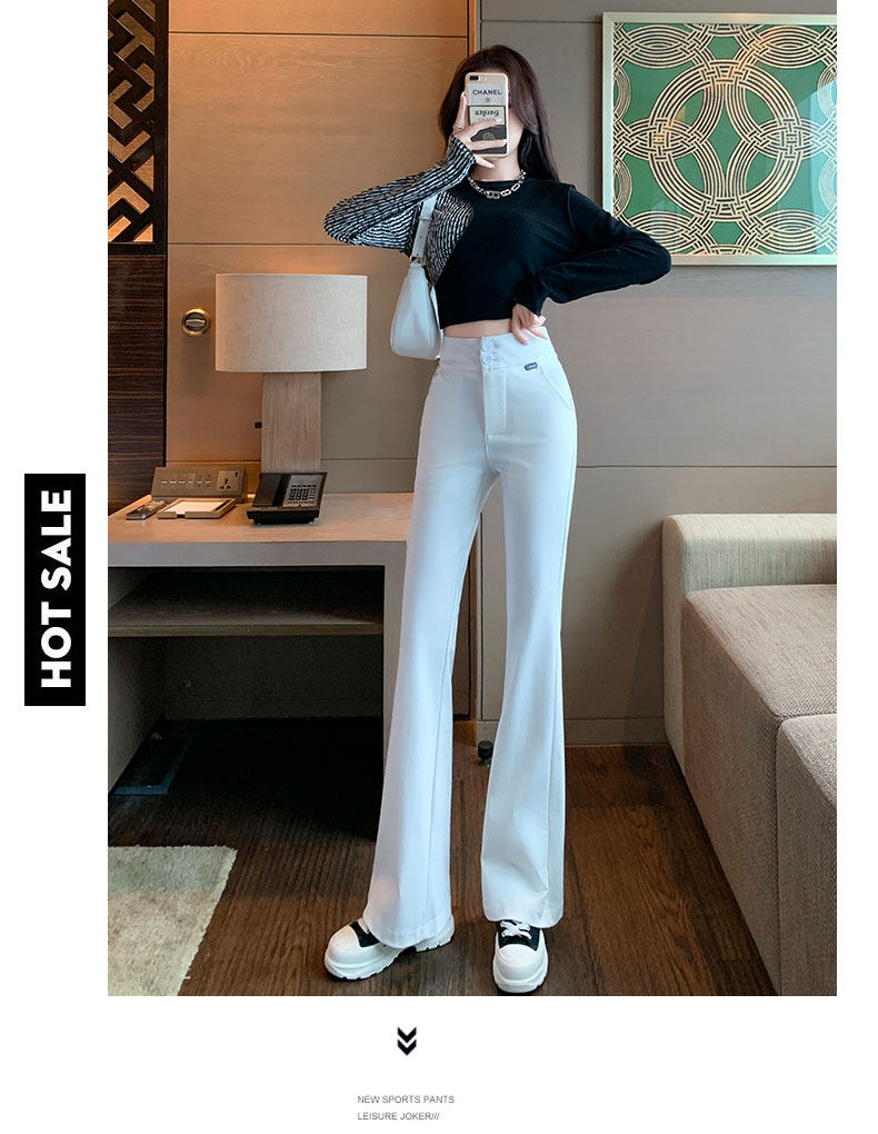 Костюм, осенние штаны, черные штаны-клёш для отдыха, высокая талия